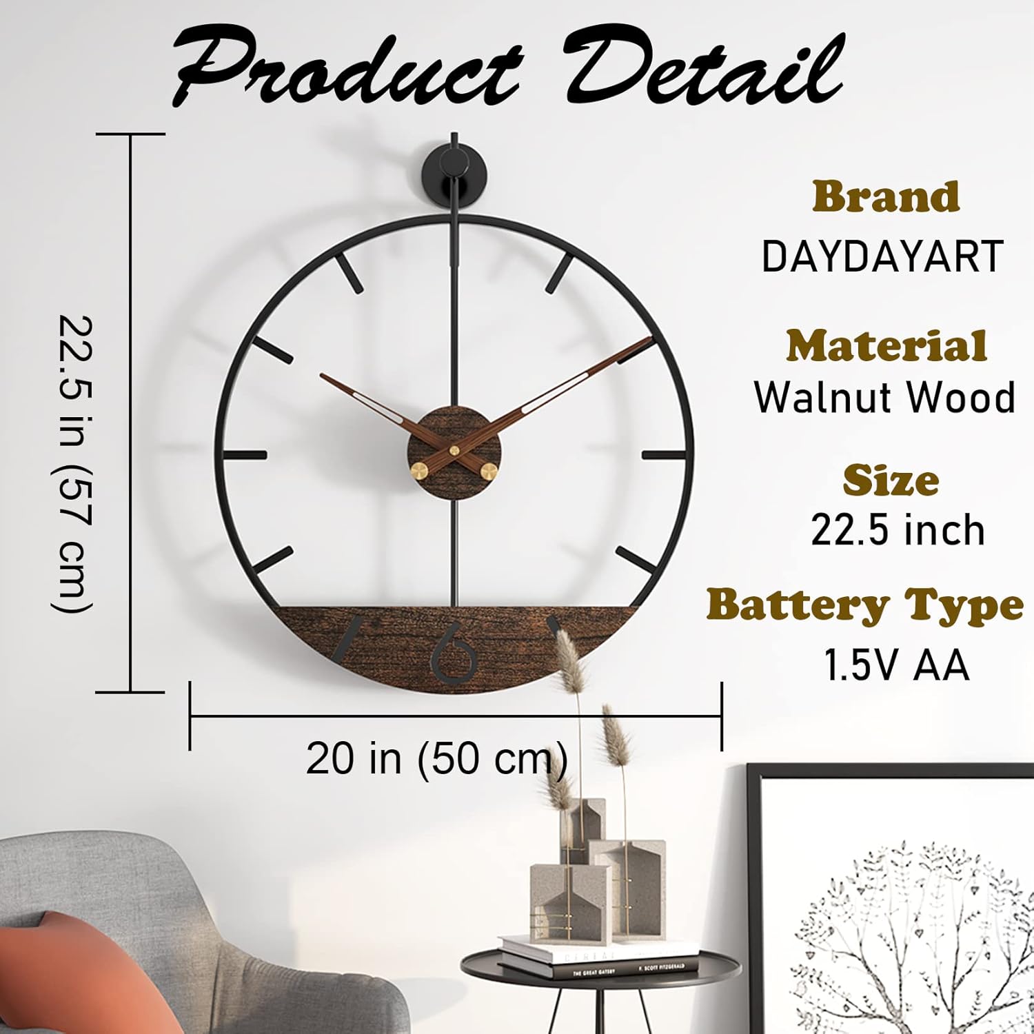- Great Decoration For Your Home: 20Ć22.5 inches (50Ć57cm) large wall clock is a suitable size for your home to enhance the artistic taste. Great decorations for living room, bedroom, kitchen, office, study, etc. It's ideal gift for yourself and friends on a festival or anniversary