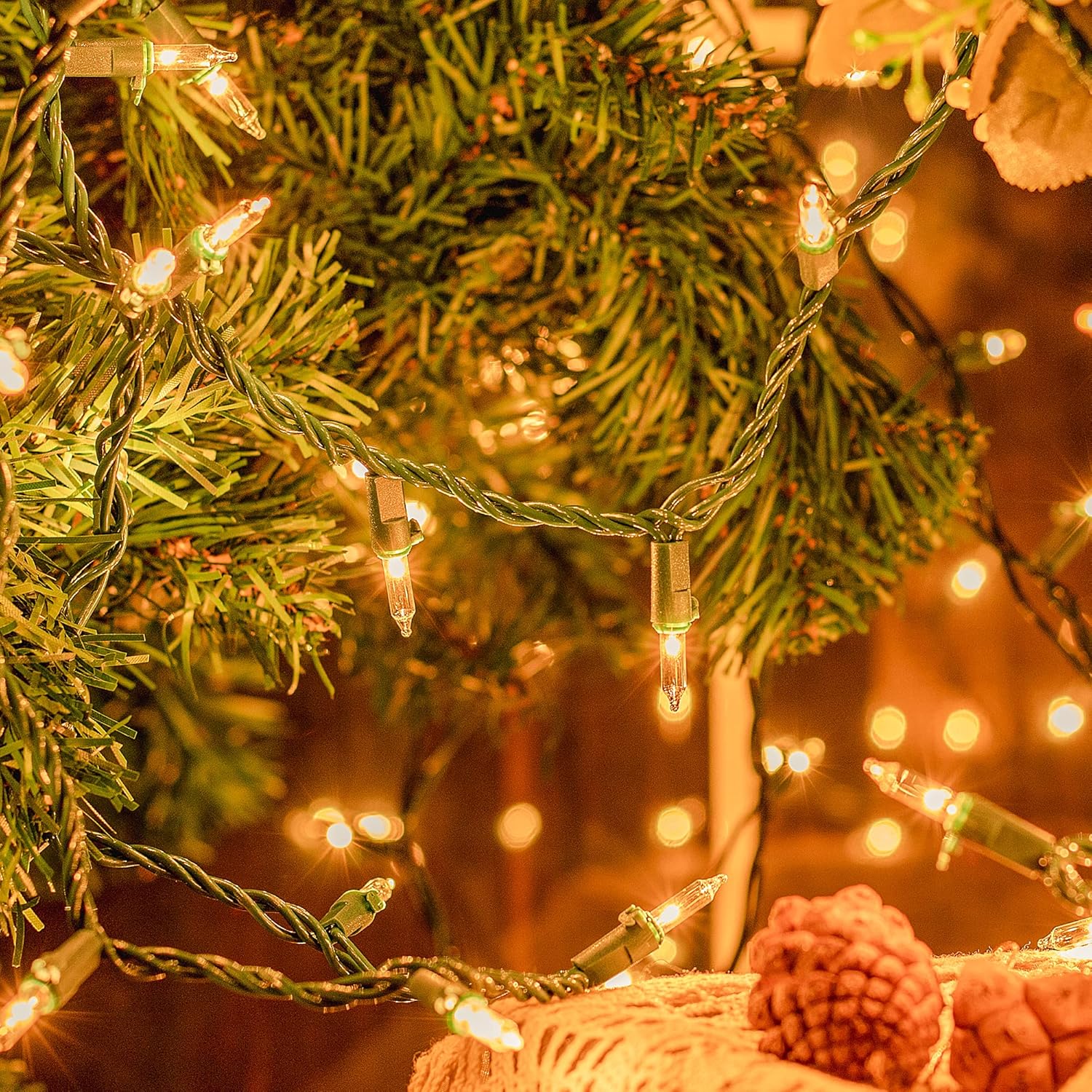 - 🌲50Count Mini String Lights: Light up the upcoming Christmas with Mimigogo 13ft 50count warm white Christmas string lights is with Green Wire,which comes with 2Extra Bulbs and 2 Replacement Fuses. In addition, our wires is more durable compared with other string lights. You can use it for a long time without fear of burning it out.