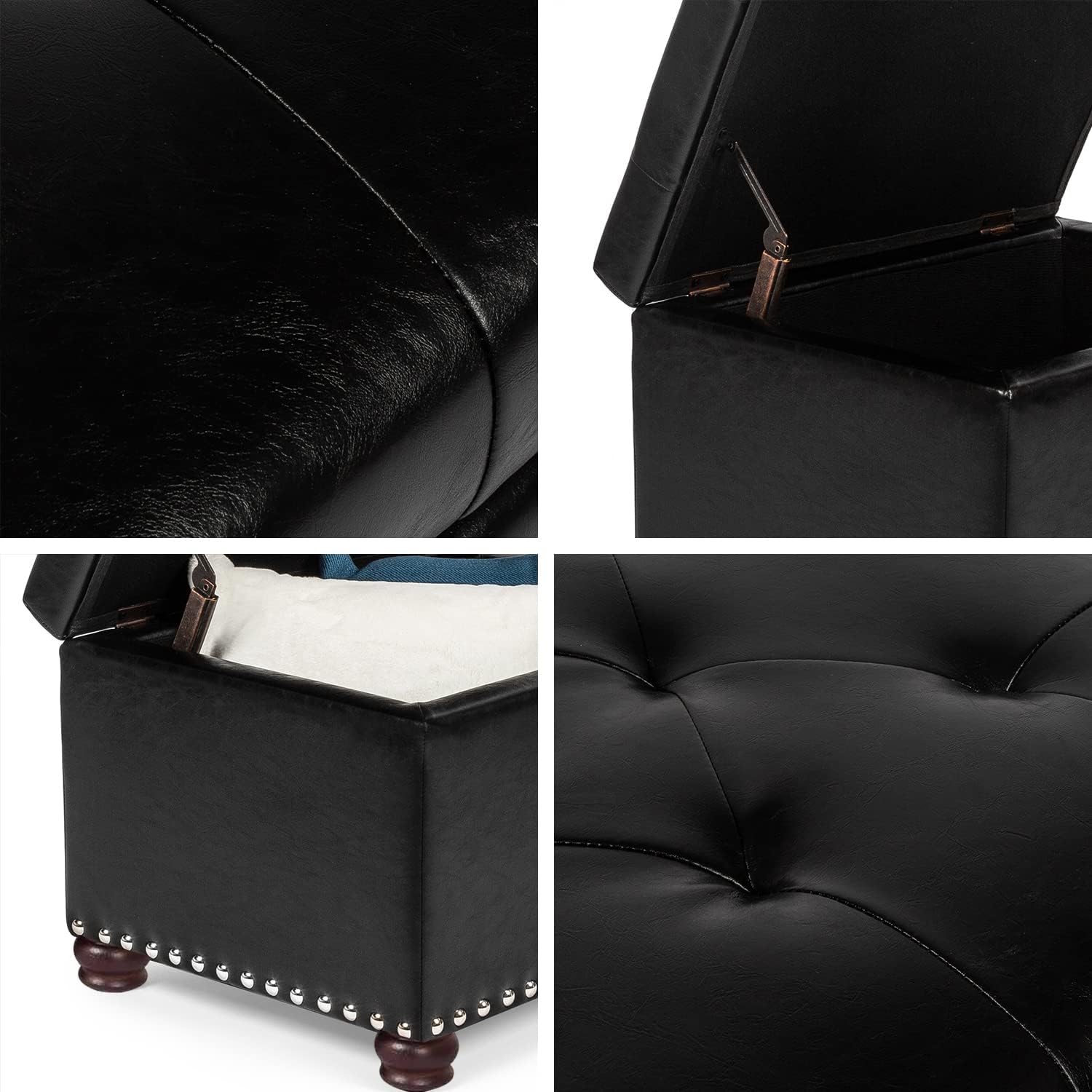 - ćClassic DesignćThe design of the ottoman foot rest incorporates button tufting,studded trim and a hinged lid.The fine design and craftsmanship make this hassocks and ottomans very strong at the hinge.Its overall construction is very strong and durable.