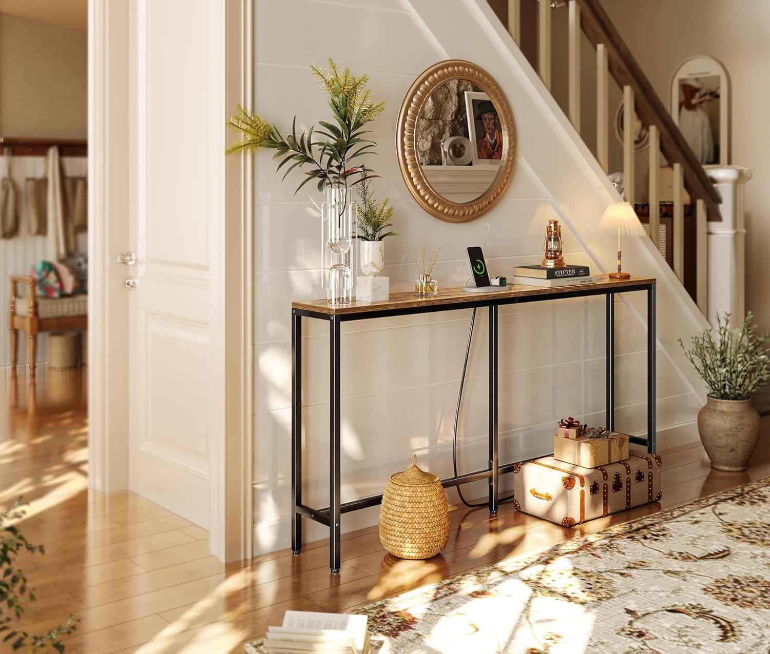 - [Quality Never Let You Down]: Sturdy P2 particle board works well with a durable metal frame, giving the hallway table for entryway surface a supporting bearing up to 55 lbs. Exactly a long-time service investment