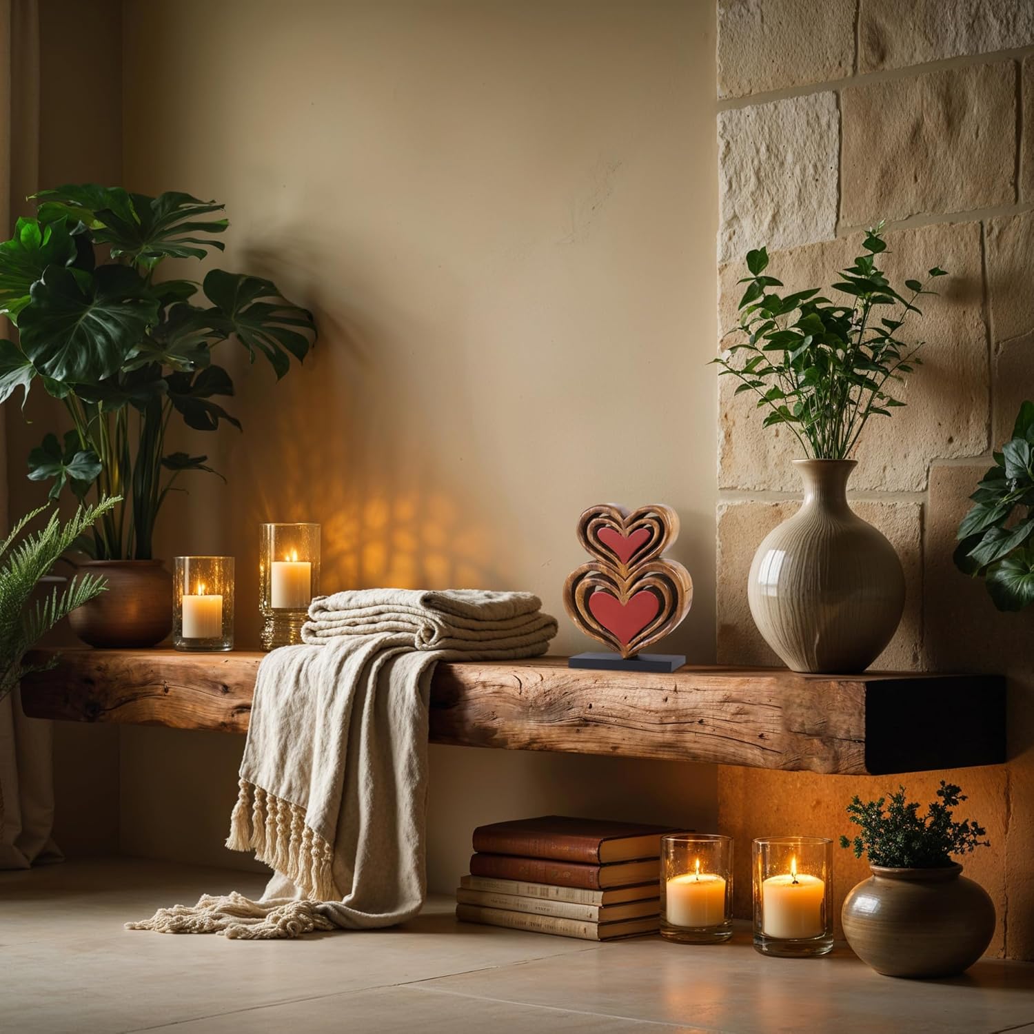 Decozen Gifts for Mom - Wooden Heart Sculpture - Mother's Day Birthday Gifts, Home, Office, Living Room, Shelf, Fireplace, Farmhouse, Tabletop, Boho and Mantle Decor - Mothers Day Decorations