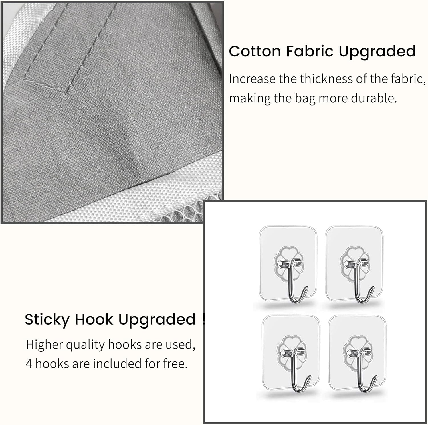 - ćUpgraded MaterialćWe had upgraded the Cotton Linen Fabric and sticky hook quality, making the wall storage bag more durable to hang. Its inner with waterproof type coating, hanging pockets can be used to store items in the bathroom.