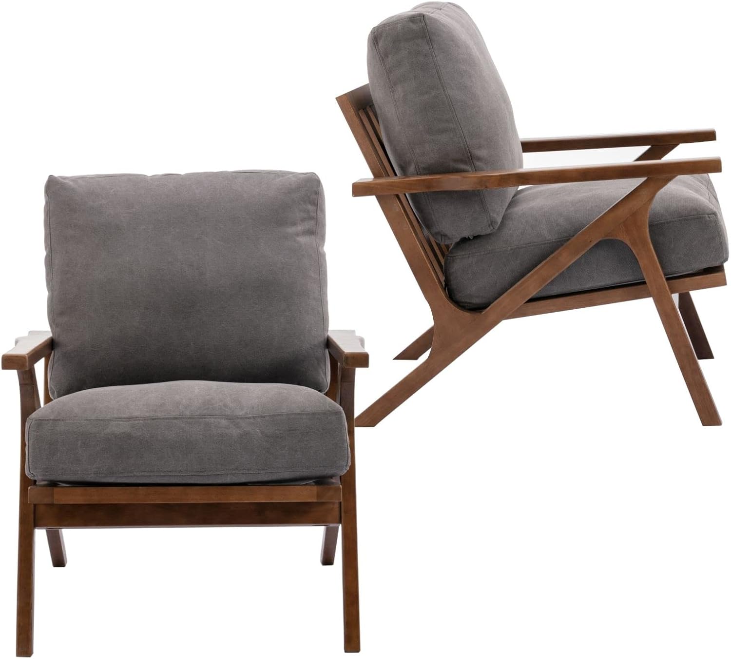HNY Set of 2 Mid Century Accent Chair, Upholstered Armchair with Wood Frame and Canvas Cushions, Leisure Reading Chair Slipper Chair for Living Room, Bedroom, Gray