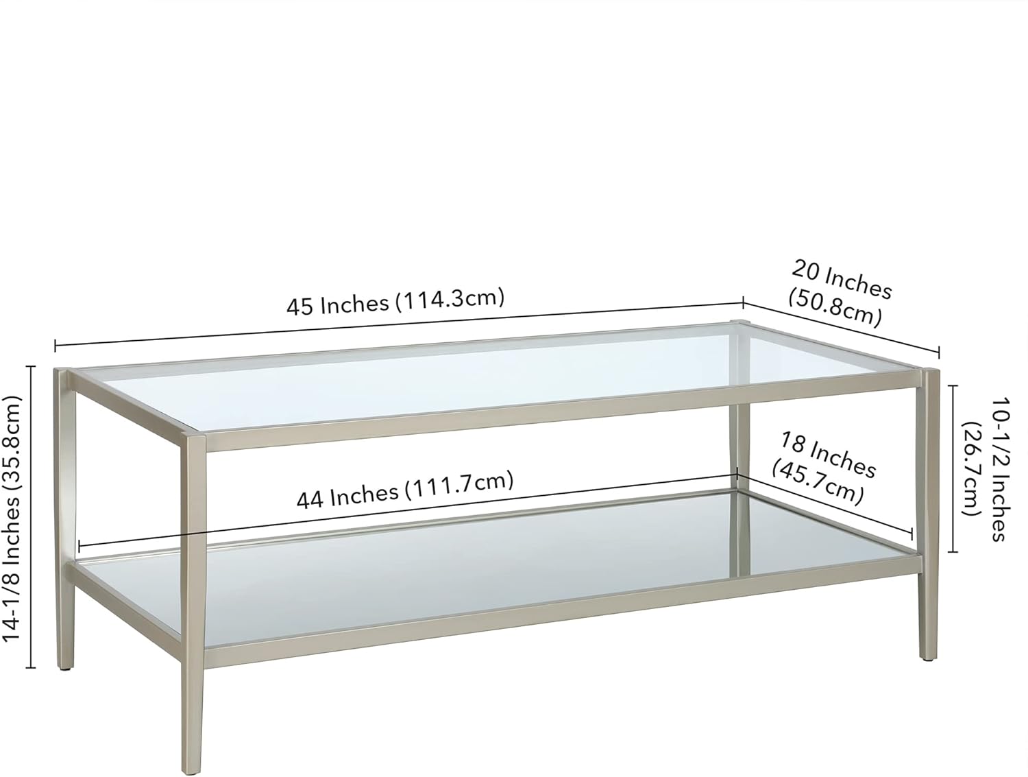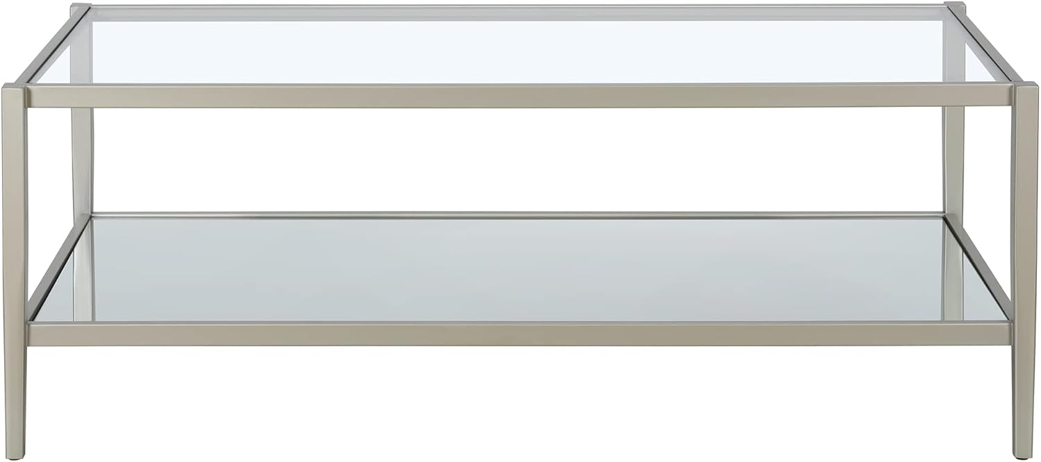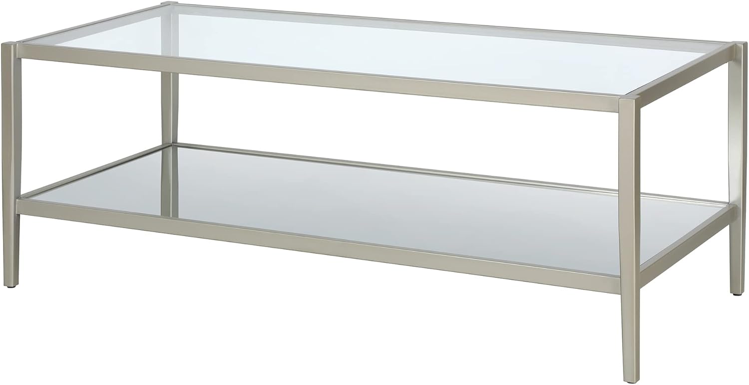Henn&Hart 45" Wide Rectangular Coffee Table with Mirror Shelf in Satin Nickel, Coffee Table coffee tables for living room, studio apartment essentials