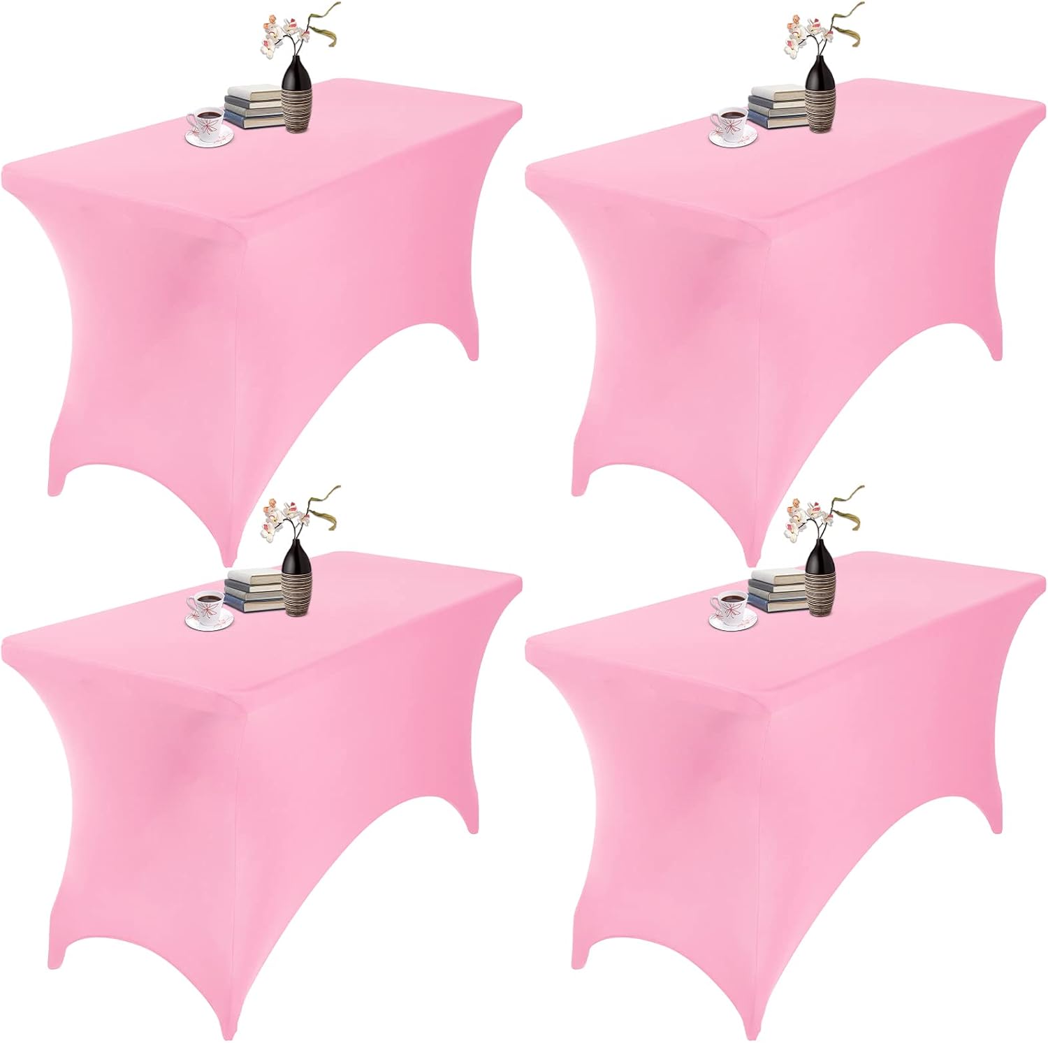4Pack Spandex Waterproof Table Covers 4ft,Spandex 4ft Waterproof Table Cover for Party,Wedding, Banquet, and Events(Pink)