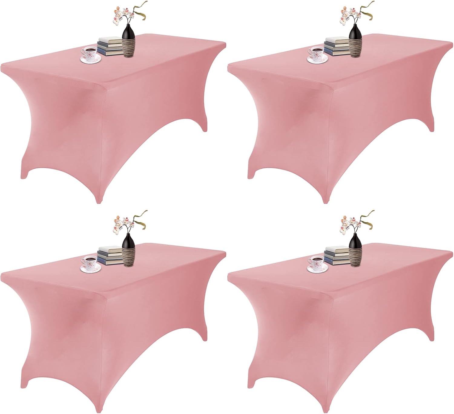 4Pack Spandex Waterproof Table Covers 6ft,Spandex 6ft Waterproof Table Cover for Party,Wedding, Banquet, and Events(Dusty Pink)
