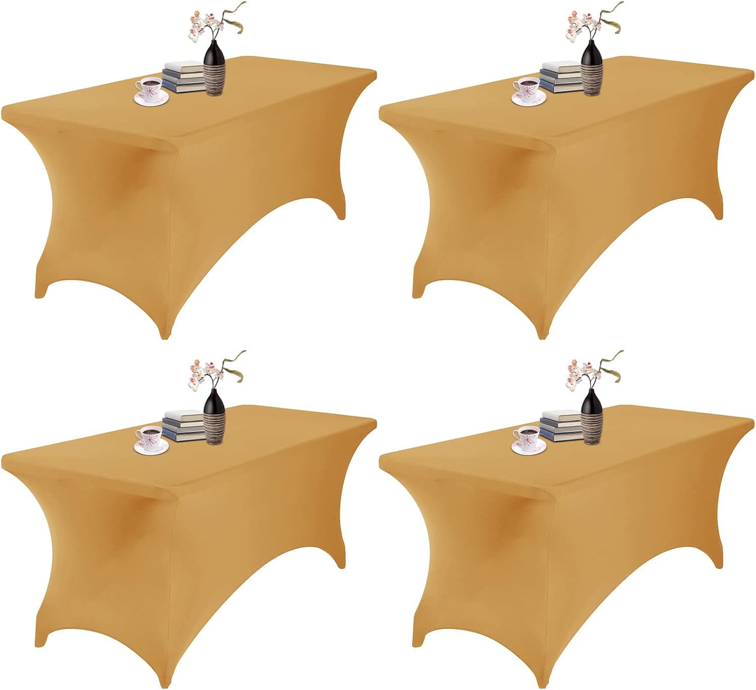 4Pack Spandex Waterproof Table Covers 6ft,Spandex 6ft Waterproof Table Cover for Party,Wedding, Banquet, and Events(Gold)