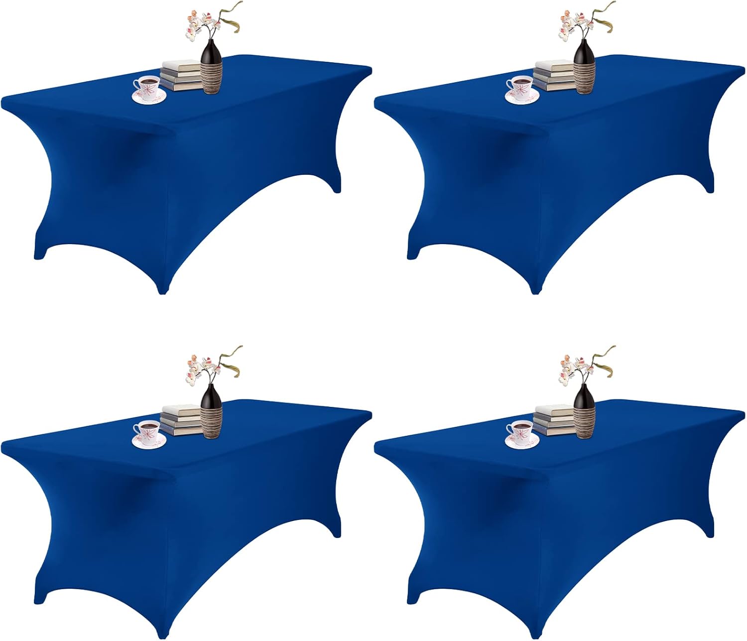 4Pack Spandex Waterproof Table Covers 8ft,Spandex 8ft Waterproof Table Cover for Party,Wedding, Banquet, and Events(Classicbule)