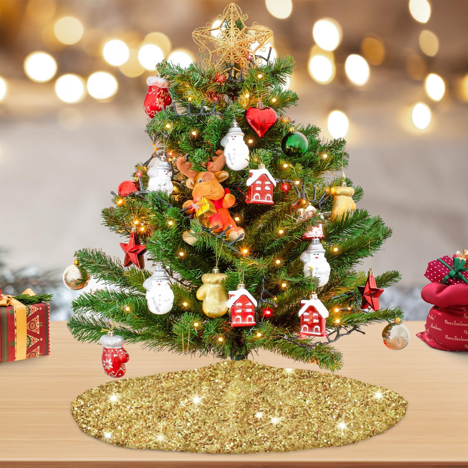 - ❄️【Size Detail - Metallic Tree Skirt】You will receive a 21 inches diameter gold glitter sequin tree skirt, fits under 3 foot tall trees. You can put some gifts, Christmas boxes, christmas ball on the xmas tree mat. The sparkle velvet Christmas tree skirt is perfect for decorating your home and become part of your holiday tradition.