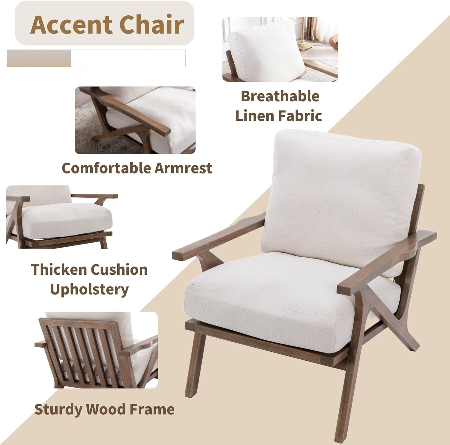 HNY Mid Century Modern Accent Chairs Set of 2, Farmhouse Linen Upholstered Armchair for Living Room, Bedroom, 23'' Seat Wide Retro Leisure Reading Chair Slipper Chair with Wood Frame, White