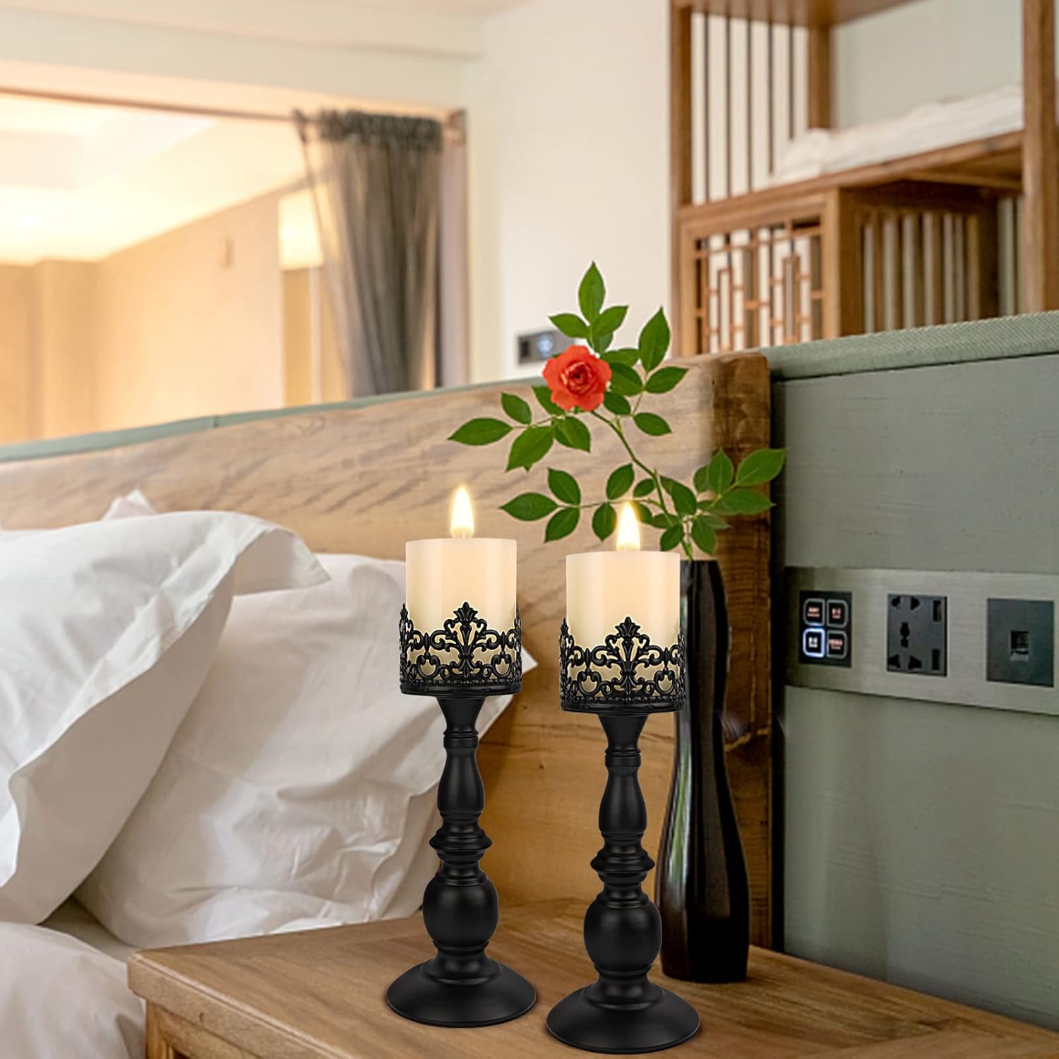 Candle Holders for Pillar Candles Gothic Matte Black Vintage Tall Candle Holders Set of 2 Decorative Large Table Centerpieces Candle Stand Decor (Black 2PCS A)