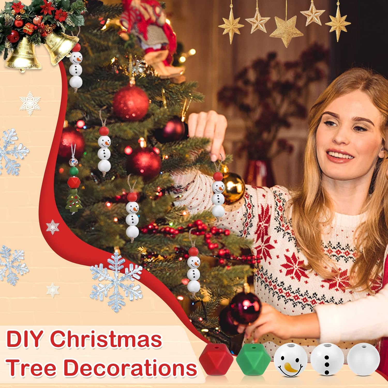 - ๐๐ก๐ซ๐ข๐ฌ๐ญ๐ฆ๐๐ฌ ๐๐๐๐๐ฌ ๐๐ฎ๐ฅ๐ค ๐๐จ๐ซ ๐๐๐๐จ๐ซ Lucomb silicone beads contain 12mm 15mm of round rubber beads with 3 different colors (white, red, green), 14mm polygon silicone beads, 16mm white wooden beads, Christmas stocking shape, Snowman, Christmas tree, Leaves-shape silicone spacer beads, ropes, big eye beading needles. All the color of beads is classic and rustic, string these all up may be making garland lanyard and tassels or decorating somewhere in the house for Christmas Decoration.