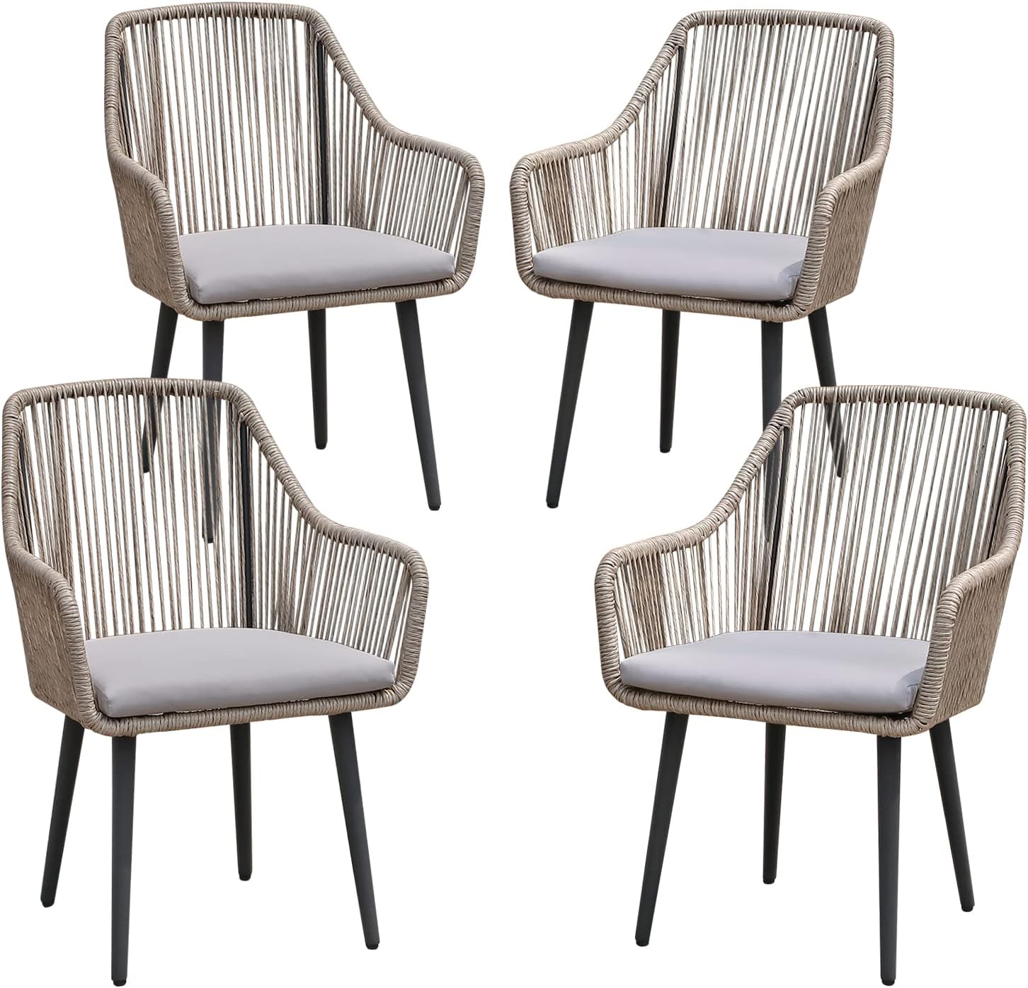 Patiorama Outdoor Dining Chairs, Patio Dining Chair Set of 4, All-Weather Woven Rope Rattan Chairs, Outdoor Dining Wicker Chairs with Armrests for Indoor Balcony Pool Backyard(Tan)