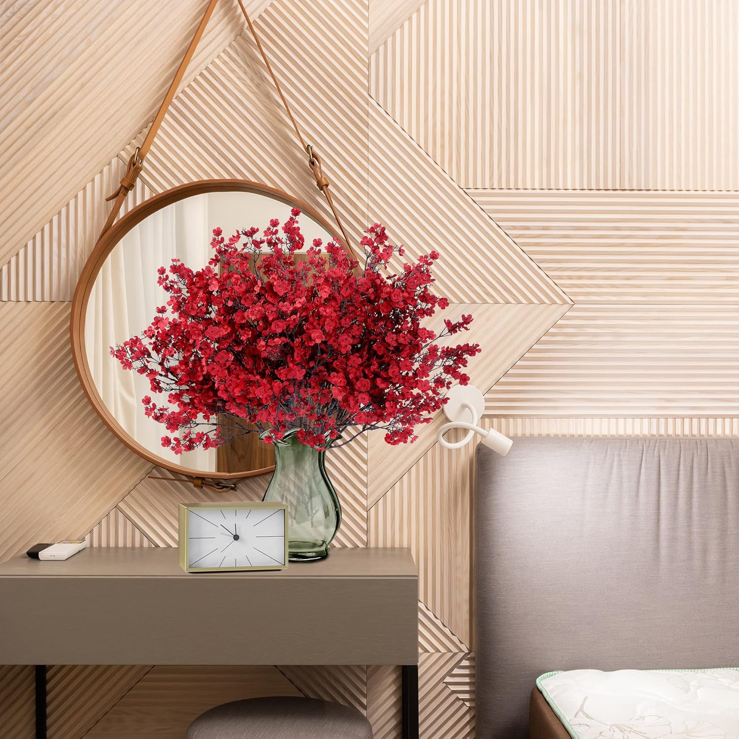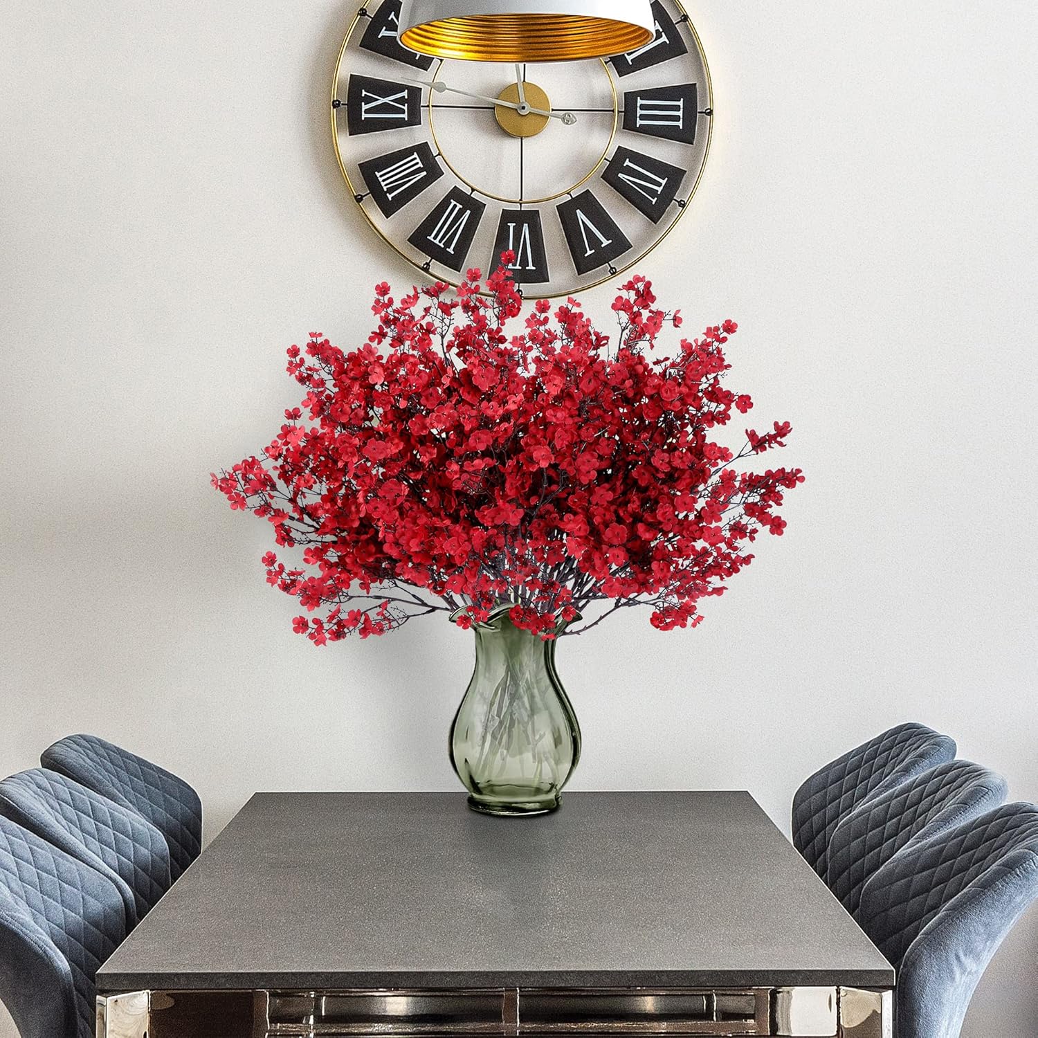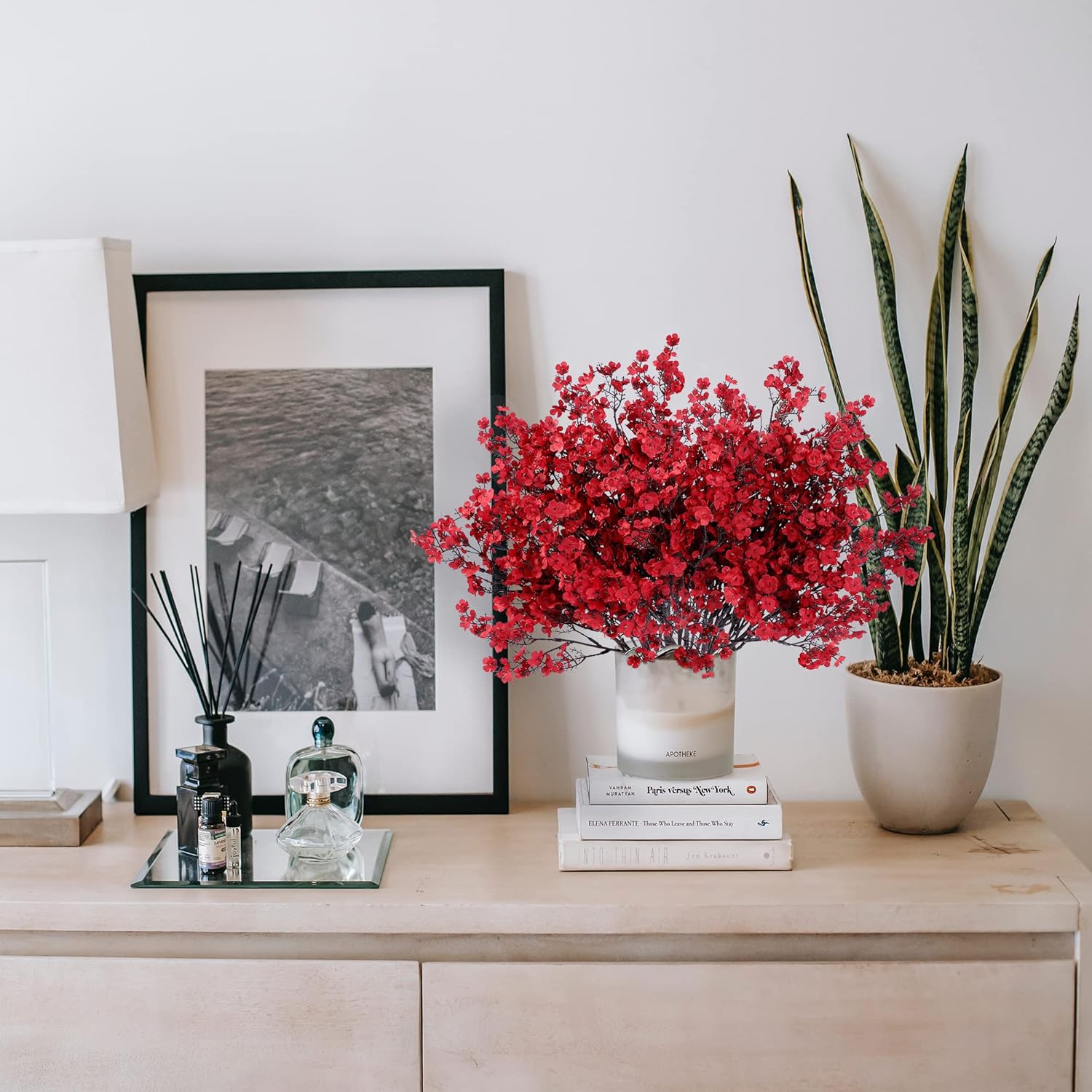 Sggvecsy 15 Pcs Babys Breath Artificial Flowers Gypsophila Bouquets Bulk Real Touch Fake Silk Flowers for Home Wedding DIY Floral Arrangement Kitchen Christmas Centerpiece Festival Decoration (Red)