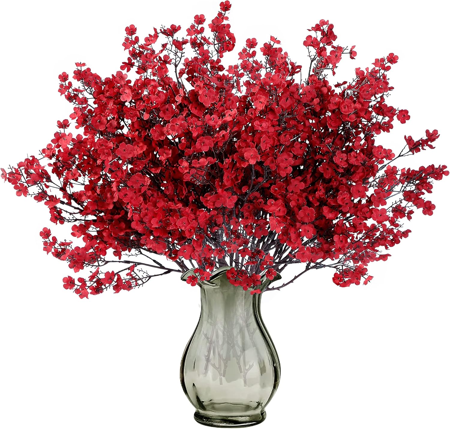 - PACKAGE & SIZE: The package has 15 red babys breath (no vase included) packed in a box, adequate enough to match many holiday ornaments and satisfy your diverse. The real touch fake silk flowers have a total length of 19in. Each piece has 5 item parts, allows you to decorate your space easily.