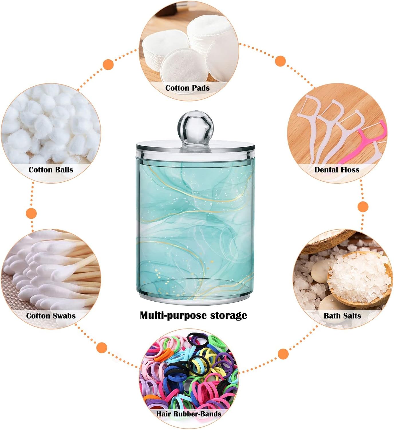 - EASY TO USE - As excellent bathroom accessories, you can easily open this storage canister with one hand. You can use these storage containers for organizing small items and keeping them neat and clean. Such as cotton balls, cotton swabs, cotton pads, beauty eggs, face brushes, floss picks, hair ties, bath salt, pens, clips, and more