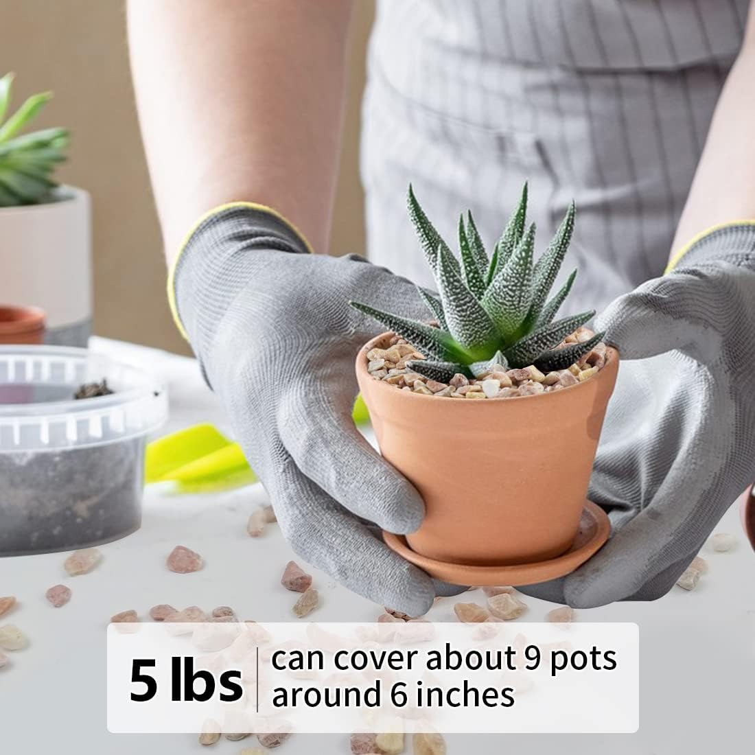 - 【Gravel Pebbles Size】These stones are packaged in a 5 pounds bag. The size is about 1/5 inch, it is perfect for succulent and cactus plants, as well as any vase or terrarium