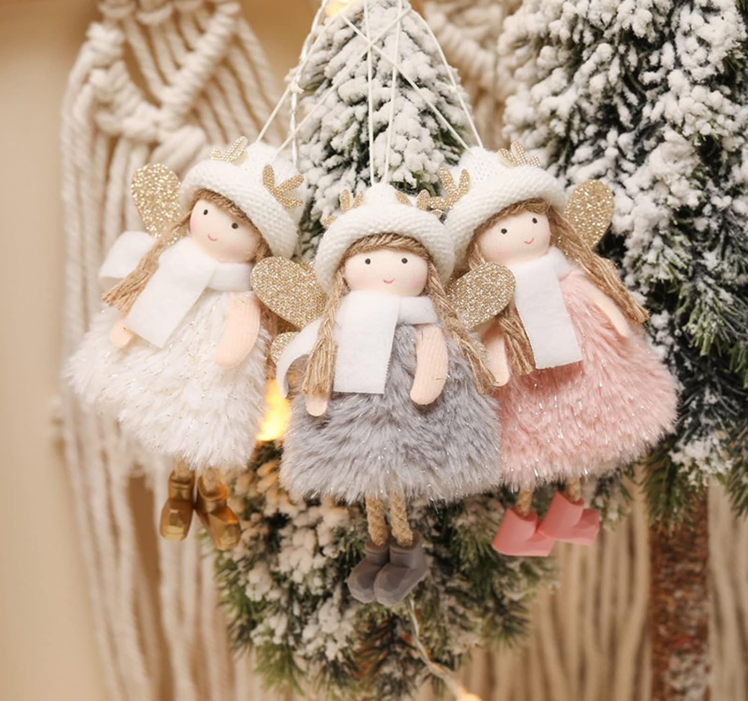- Whole Set: 3pcs/set, White, Pink and Grey Skirts Christmas Tree Hanging Angel Winged Fairy Doll Decoration
