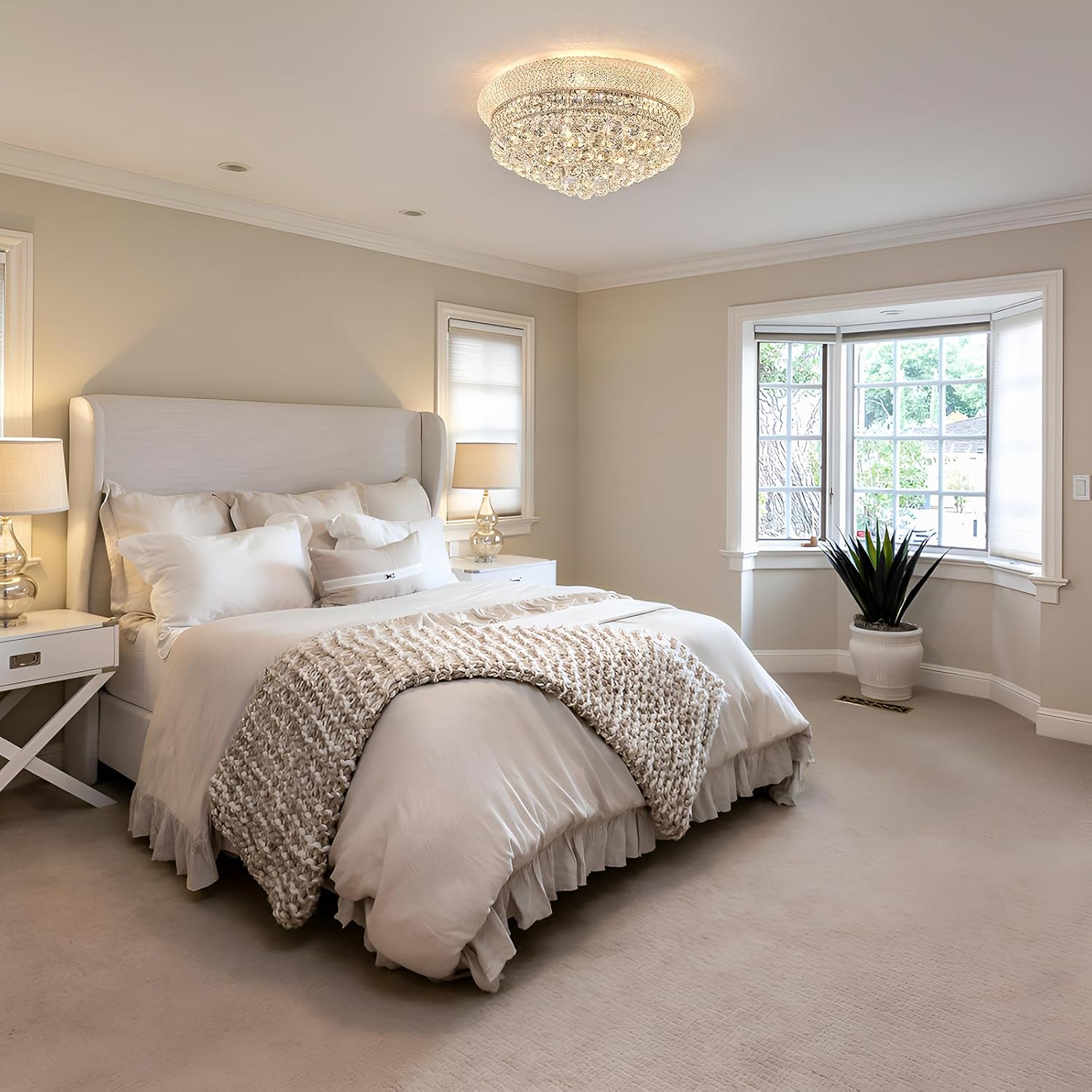 9-Light Crystal Flush Mount Chandelier Ceiling Light Fixture for Living Room Dining Room Bedroom Foyer Entryway Hallway Closet Bathroom (Chrome D22)