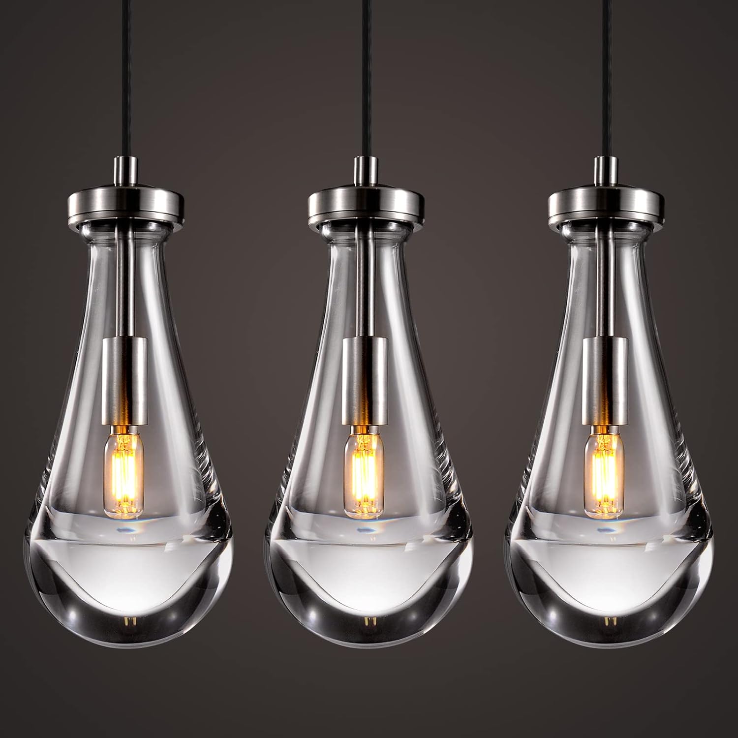 Raindrop Pendant Lights Set of 3, Modern Pendant Lights Kitchen Island 3 Pack, Brushed Nickel Island Light, Pendant Light for Bedroom Bathroom, Chandelier for Living Room Hallway
