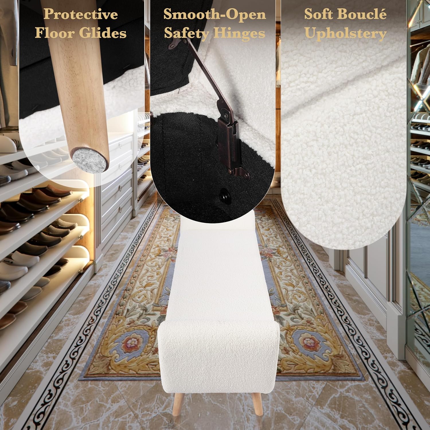 - DECORATIVE BENCH: The end of bed storage bench is a practical addition to your bedroom decor. With its long design, it offers a visually pleasing and functional accent to your space. The built-in storage compartment allows you to conveniently store items such as shoes, linens, or accessories