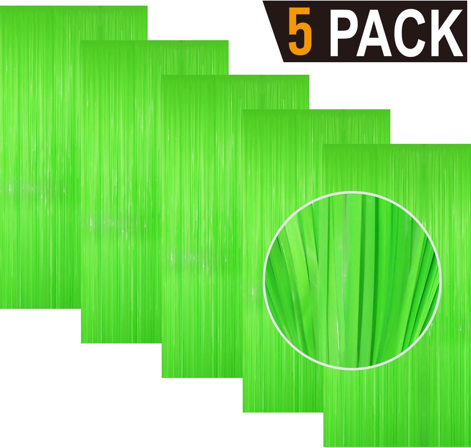 - Package Includes:5 Pack Candy Lime Green Foil Fringe Curtains