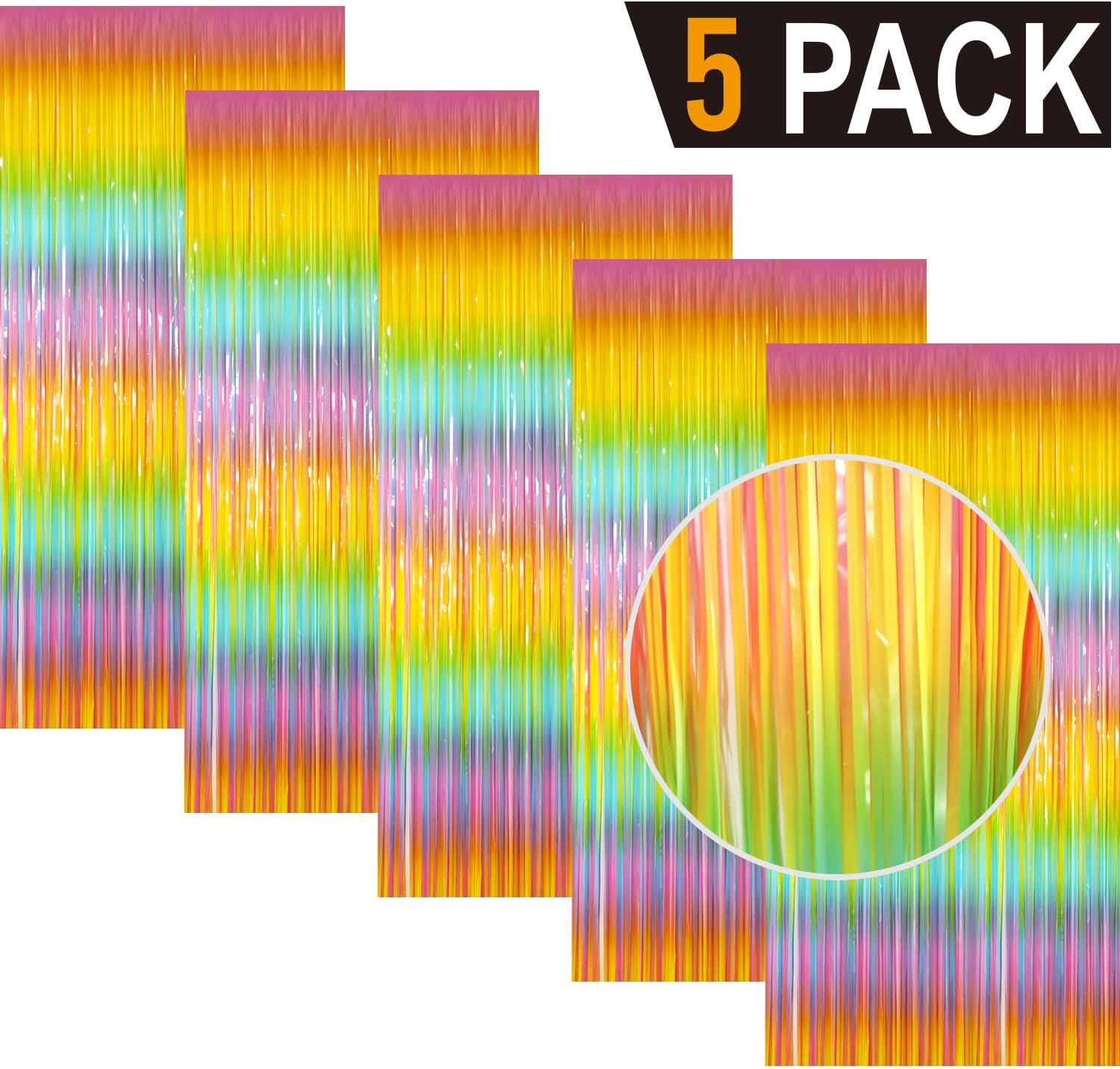 GOER 3.2 ft x 8.2 ft Metallic Tinsel Foil Fringe Curtains Party Photo Backdrop Party Streamers for Birthday,Graduation,New Year Eve Decorations Wedding Decor(5 Packs,Candy Macaroon Multicolor)