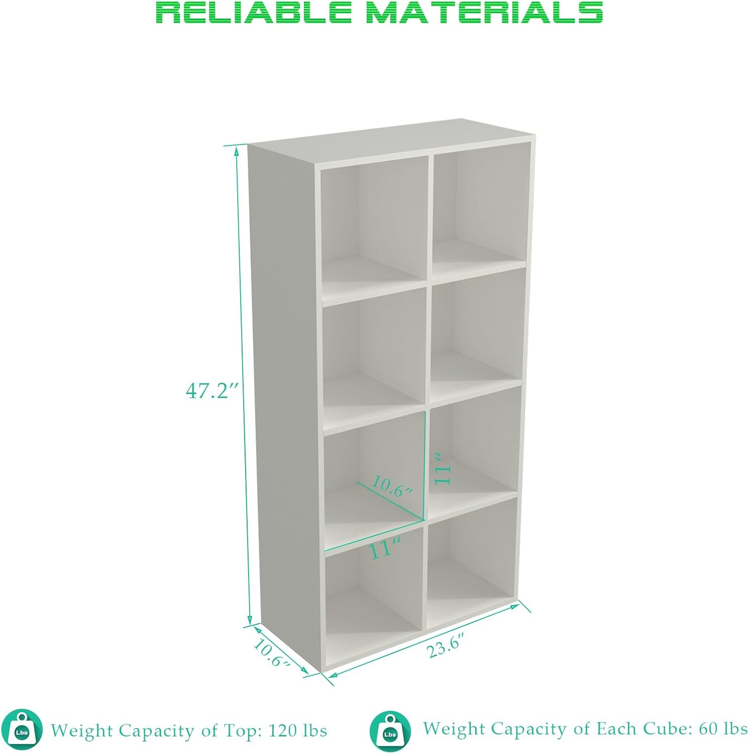 - 8 CUBES DESIGN - The white 4x2 cubes design makes the open cube shelf look very modern. The opening design allows you to display any item you want.