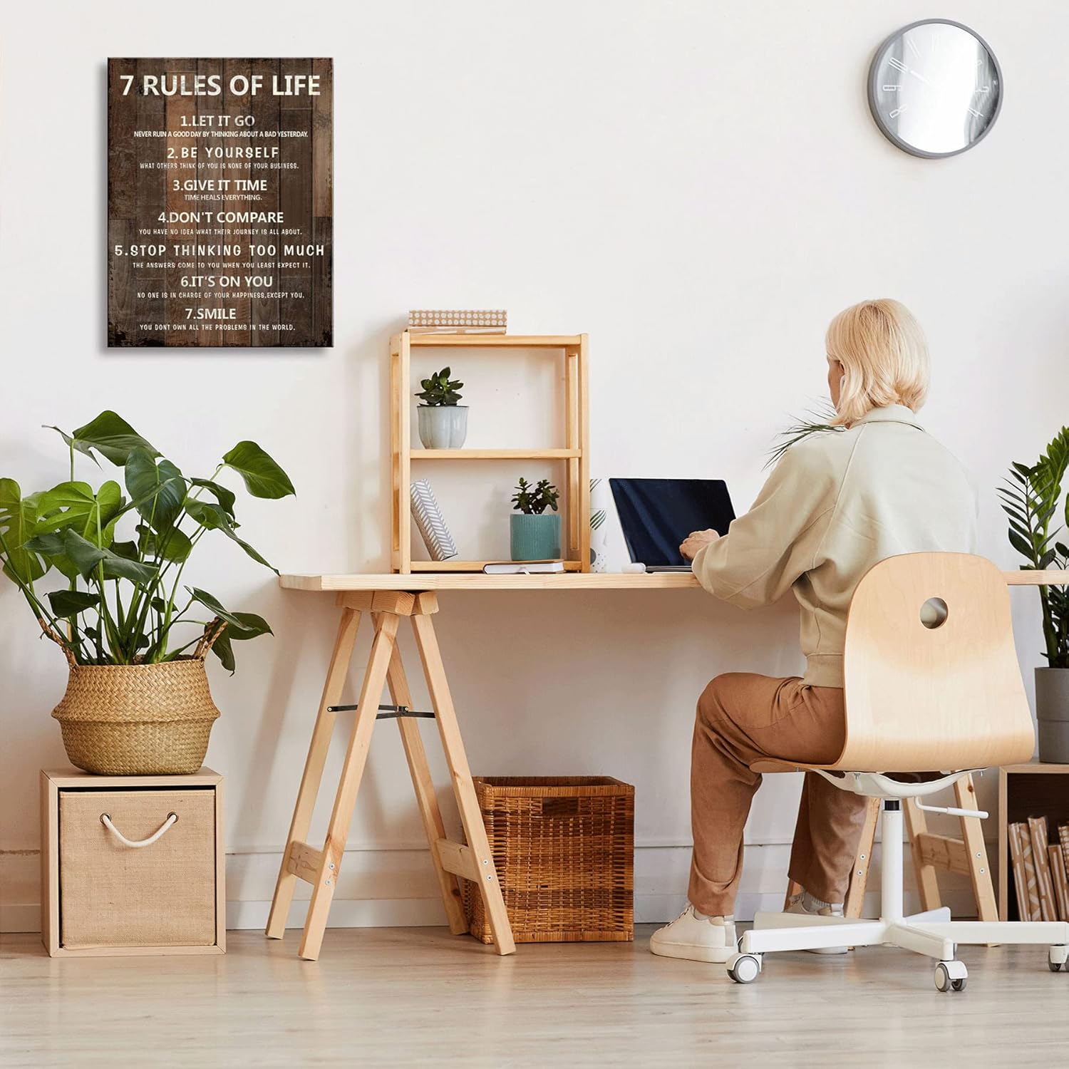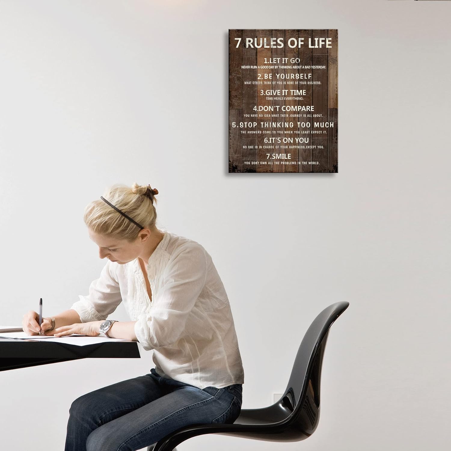 7 Rules of Life Wall Art Motivational Inspirational Poster Printed on Canvas Wall Decor for Living Room or Office Size11.5 x 15 Inch Framed Canvas Prints For Bedroom or Home Art Decoration Ready to