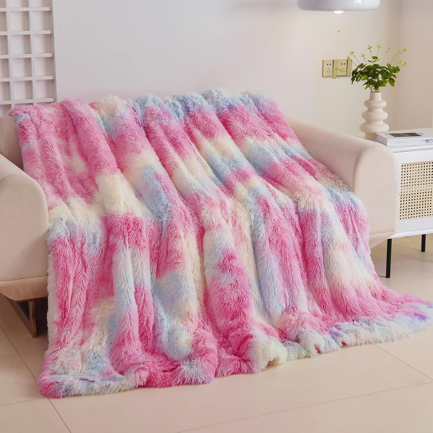 - Elegant & Cozy: Diverse patterns including tie dye, solid colors, dots and stripes and 1.5 inches of soft faux fur enhance the classy appearance of the blanket to complement the chic feeling of your room. Bring you all year round coziness and elegance.