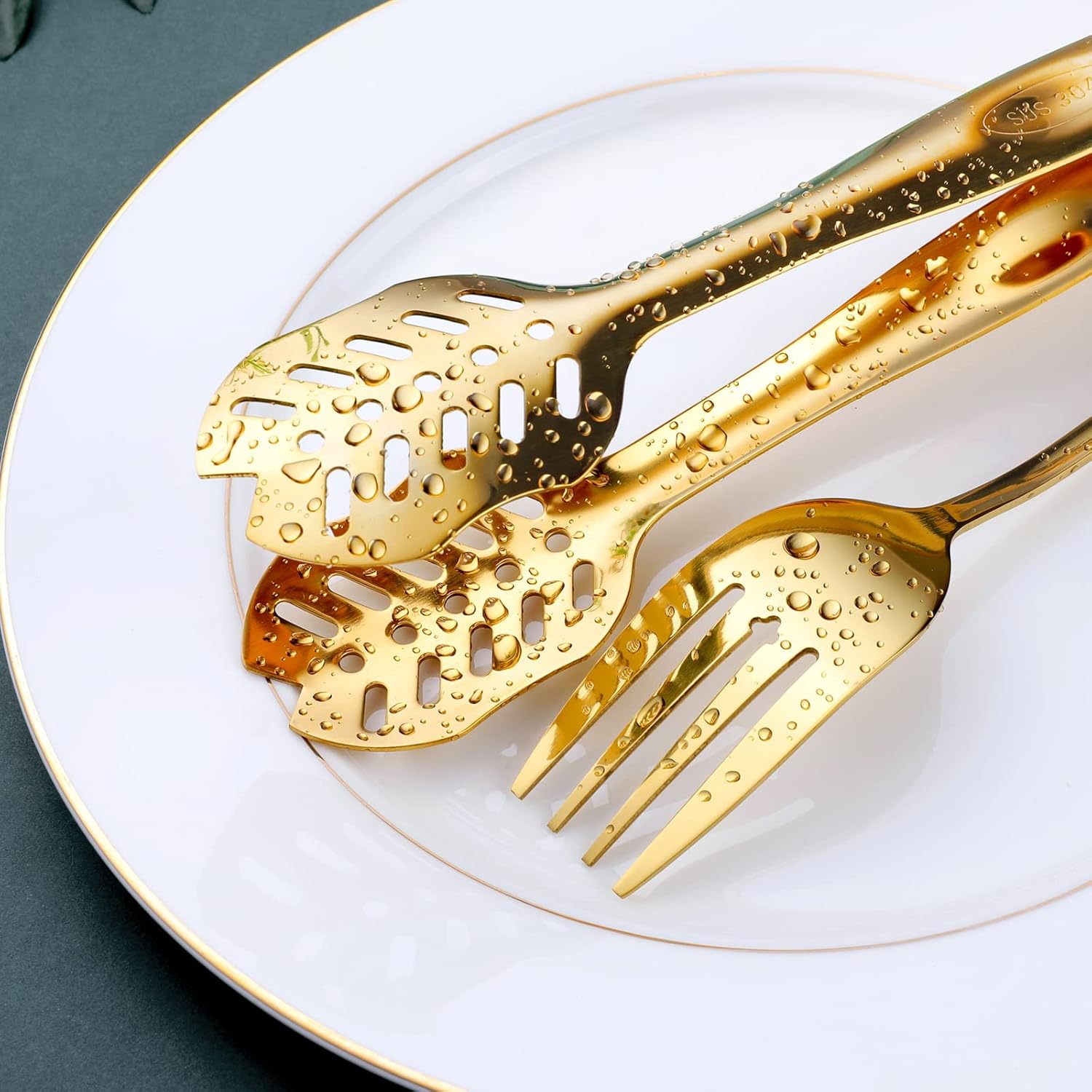 - 【ELEGANT DESIGN】Mirror polishing finish enhance the look and style of your meals with a modern and sophisticated look and feeling. Each meal will be effortless and pleasant with our gold serving utensils set.