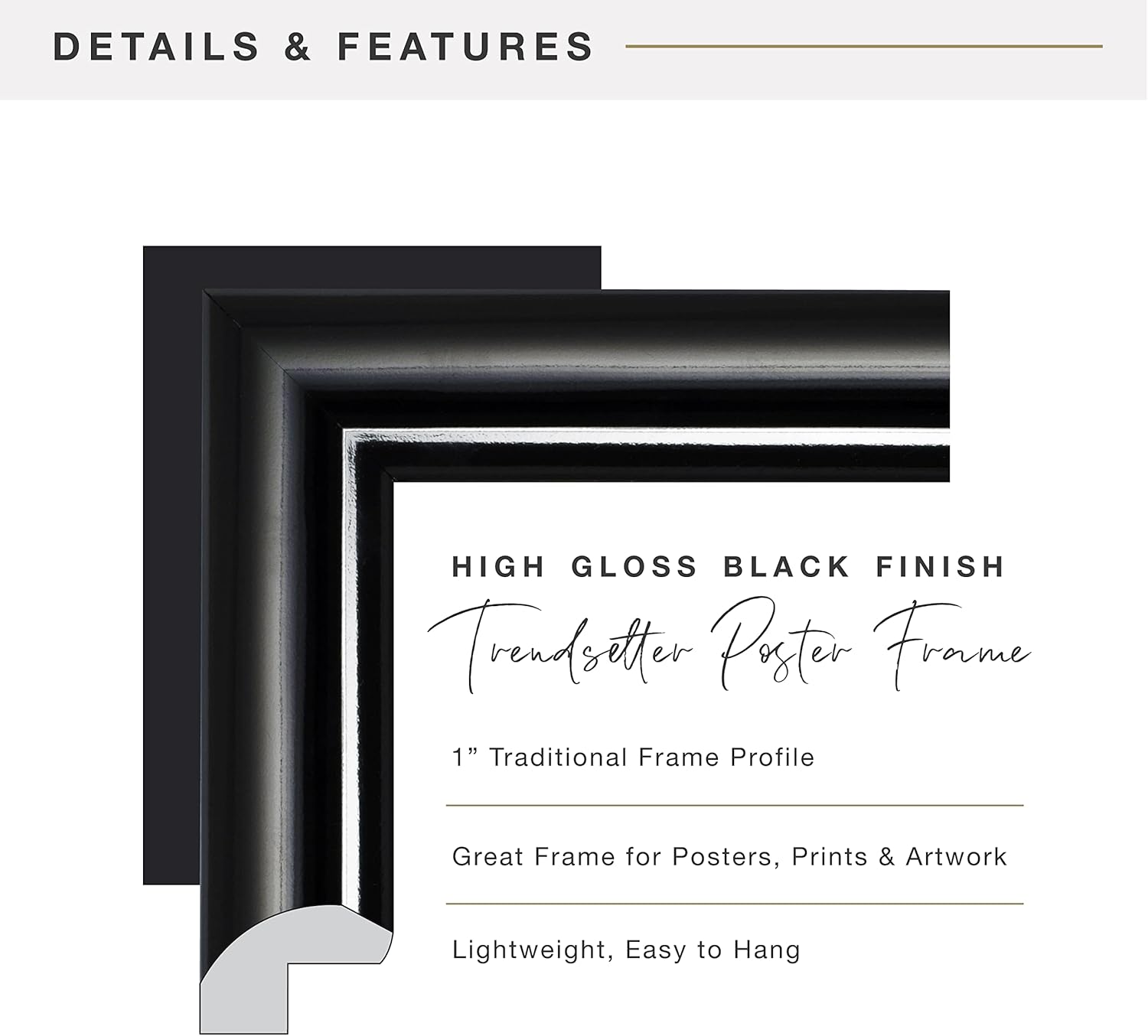 MCS Trendsetter 8x24 Poster Frame Black High-Gloss, Vertical & Horizontal Wall Hanging Large Picture Frame for Photos, Posters & Art Prints (1-Pack)