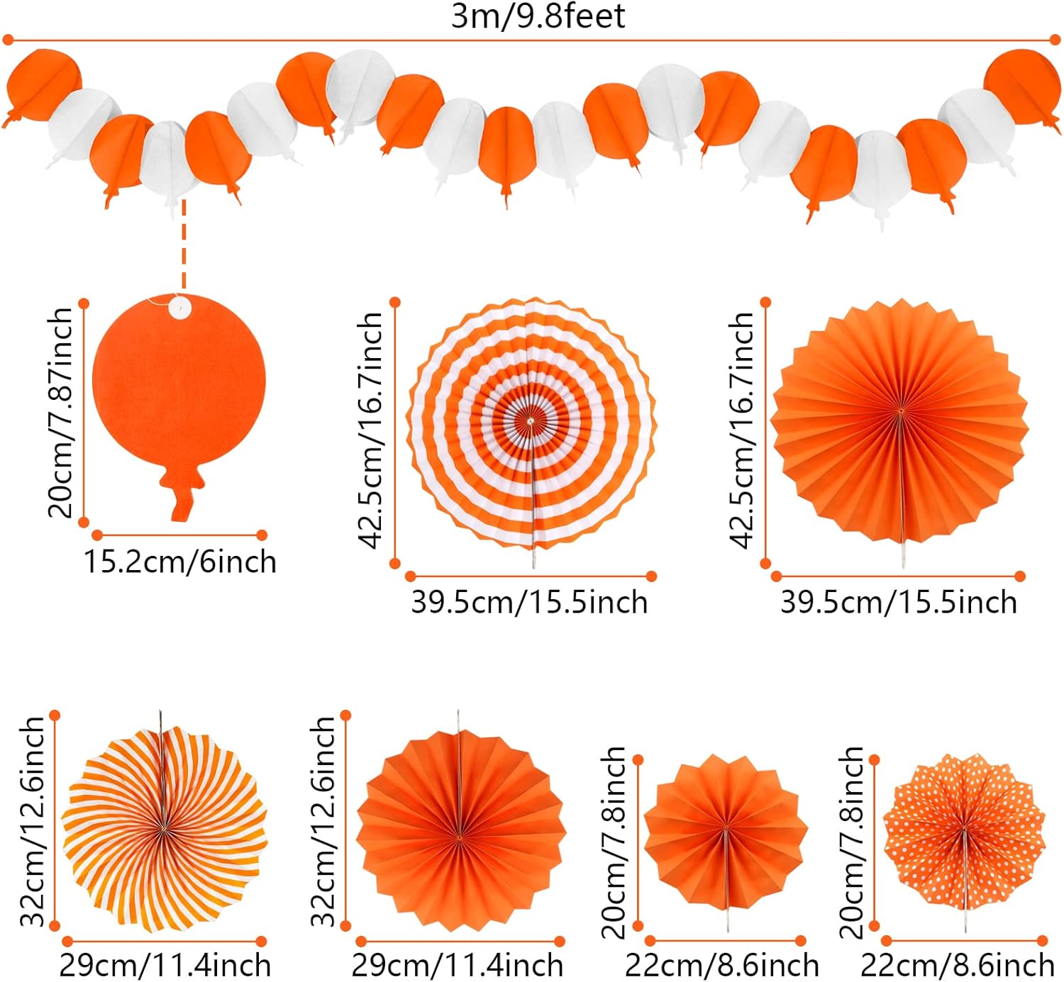 - 【What you will get】6 x paper fans, 8 x paper pompoms, 4 x paper hollow fans, 1 x paper hot air balloon garland (Color: Orange)