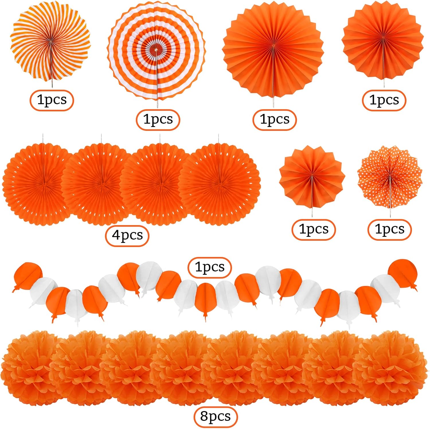 Orange Party Decorations, Papar Fans Pompoms Fans Garlands for Halloween Birthday Bridal Baby Shower Wedding Graduation Spring Festival Party Decorations