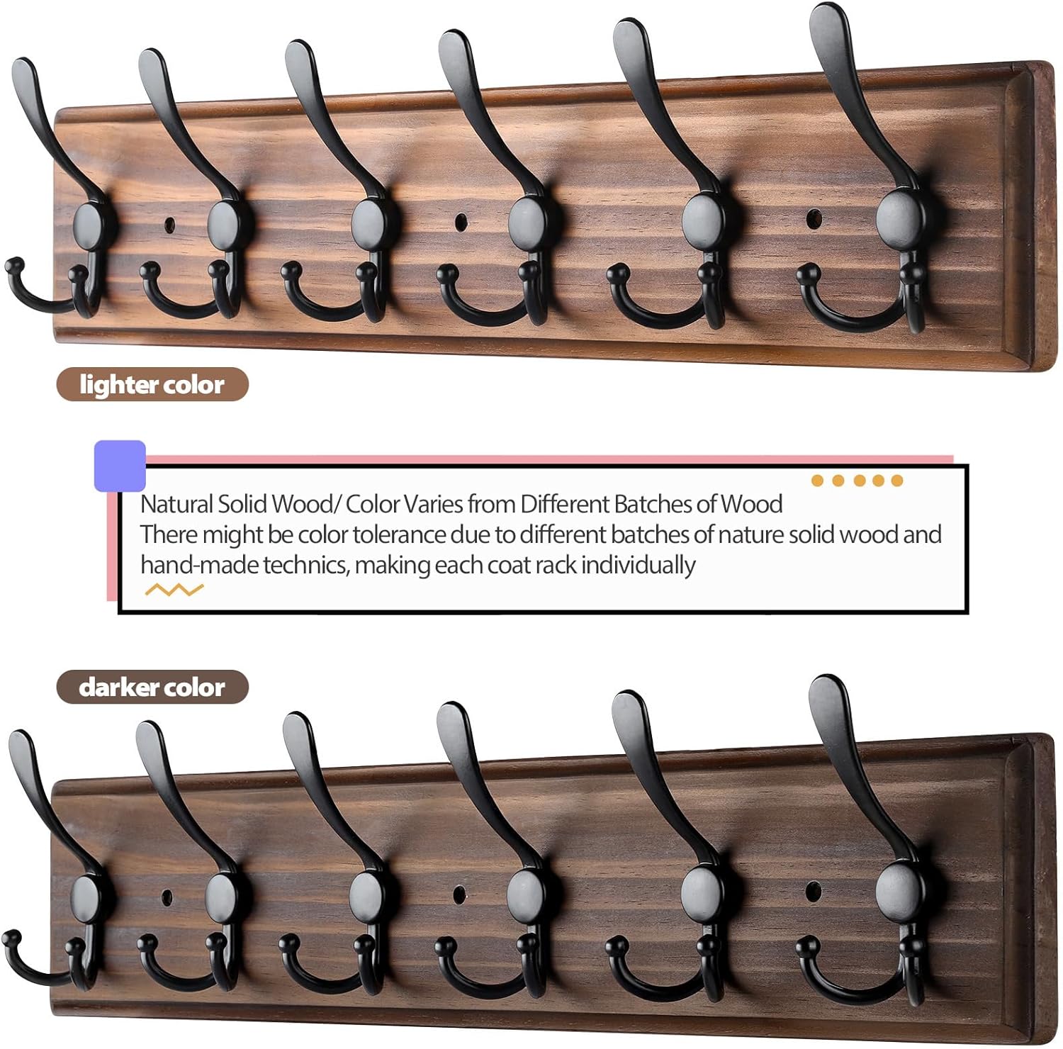 Coat Rack Wall Mount, Wooden Heavy Duty Coat Rack for Wall,6 Triple Coat Hanger Hooks for Hanging Coats,Jacket,Hat,Clothes (Brown, 6 Hooks)