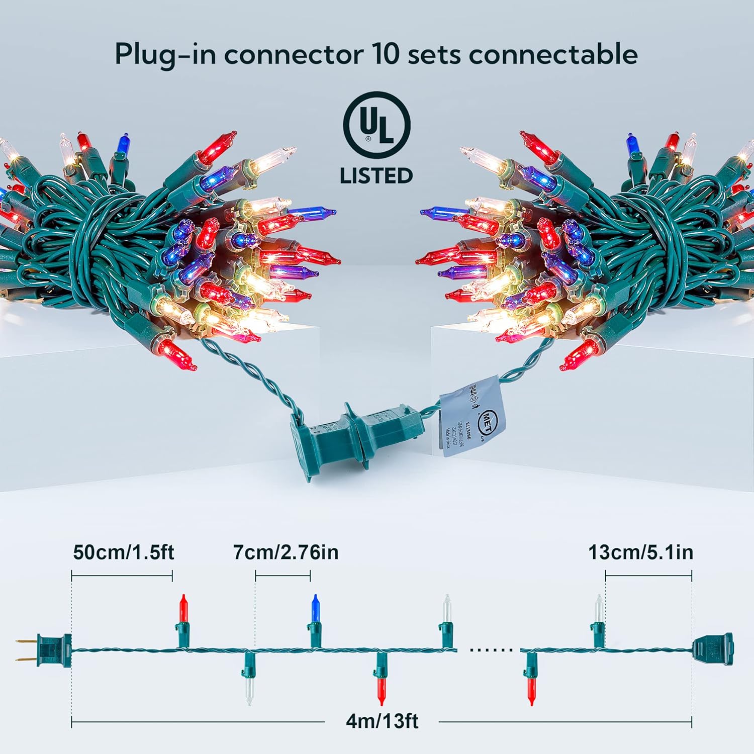 - 🎈Safe to Use : 50count red white blue incandescent lights are UL certified and the quality is guaranteed. Our mini lights have built-in fuses, which will protect the short circuit caused by the damaged wire and can effectively prevent the possibility of fire. High quality use rest assured. Warm tips: Please kindly protect these string lights from immersing in water and keep the plug dry.