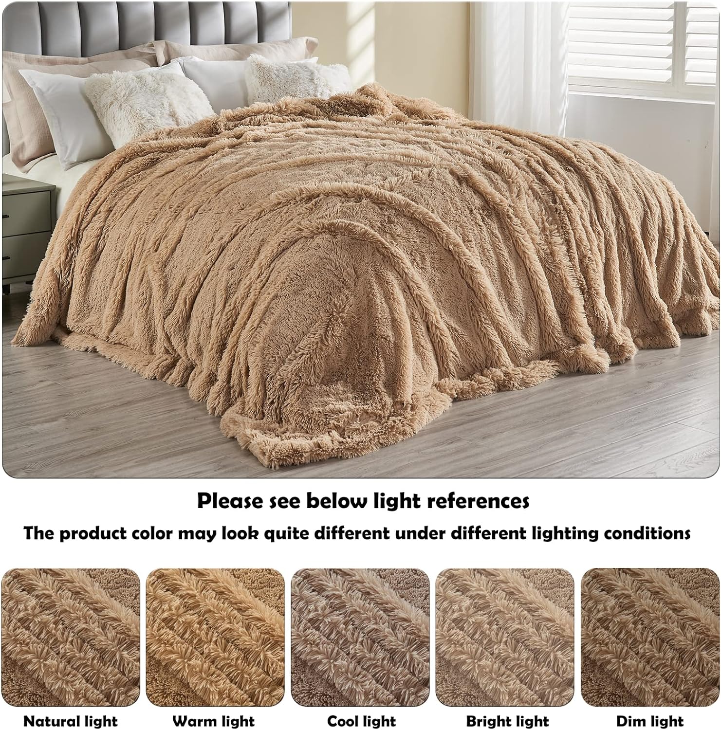 GONAAP Fuzzy Faux Fur Throw Blanket Brown Super Soft Cozy Plush Fuzzy Shaggy Blanket for Couch Sofa Bed (Brown, Throw(50"x60"))