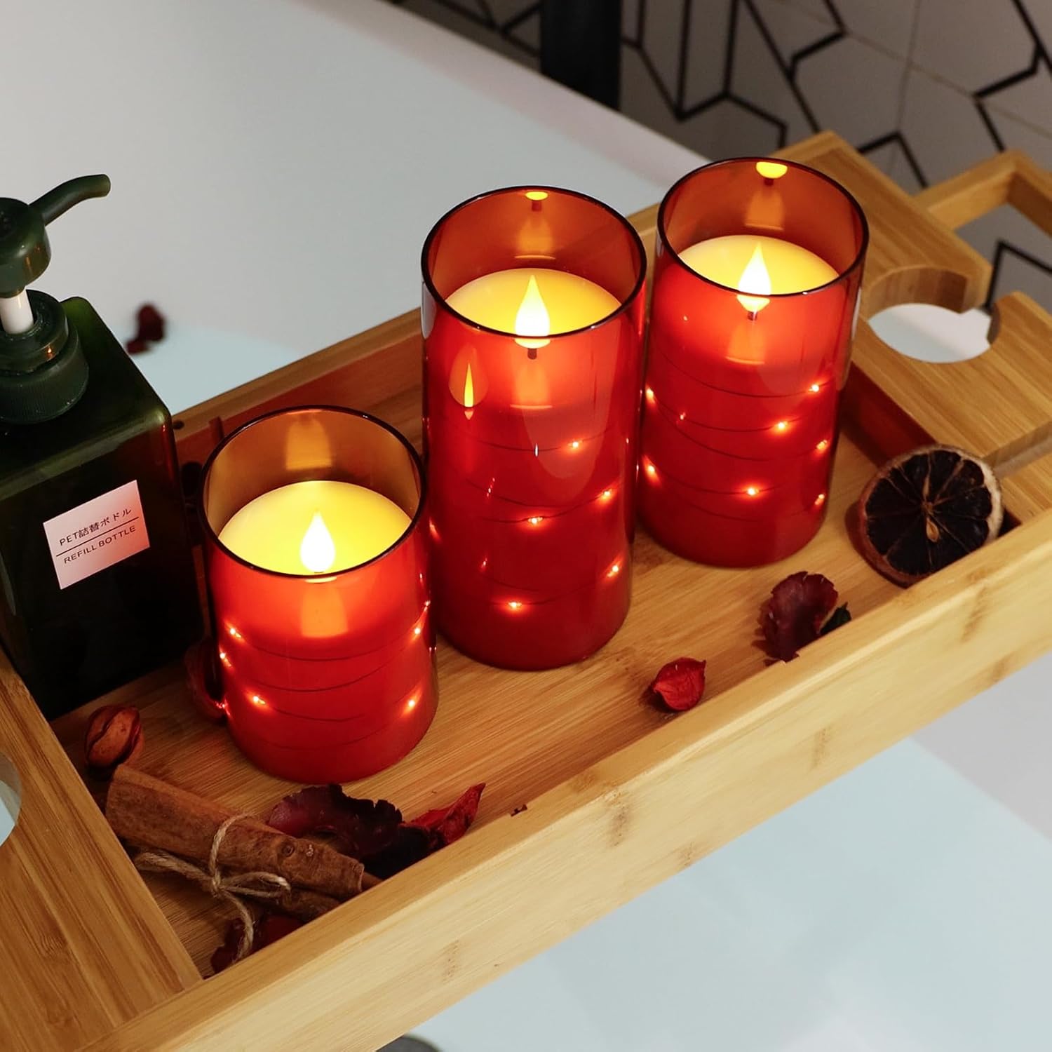 - 3D Wick and Realistic Appearance, Unbreakable Design - Made of premium acrylic, 3D black wick realistic flicker design. Compared with glass radiance candles, premium imitation glass acrylic shells make the battery candles stronger and long-lasting. Through the clear shell, feels and looks like real wax pillar candle flame