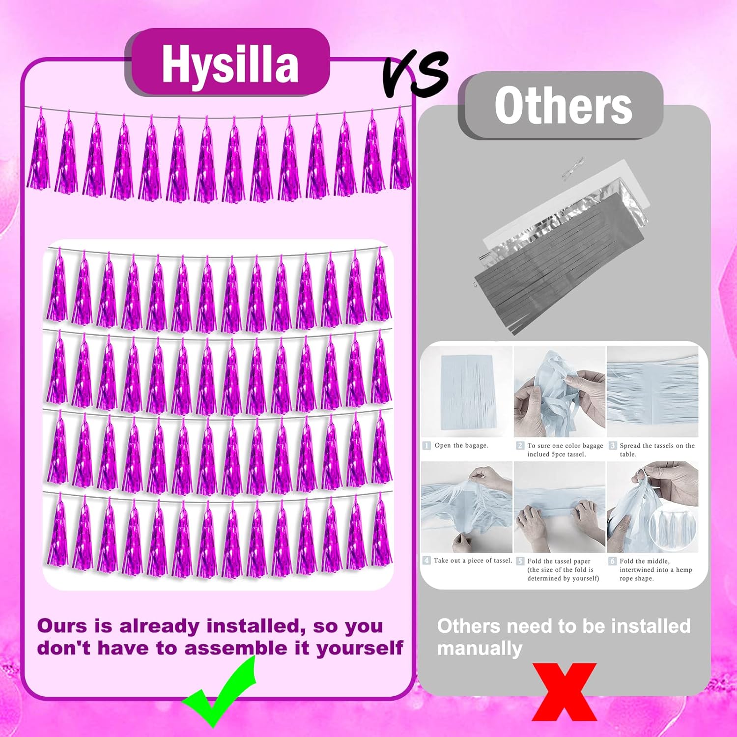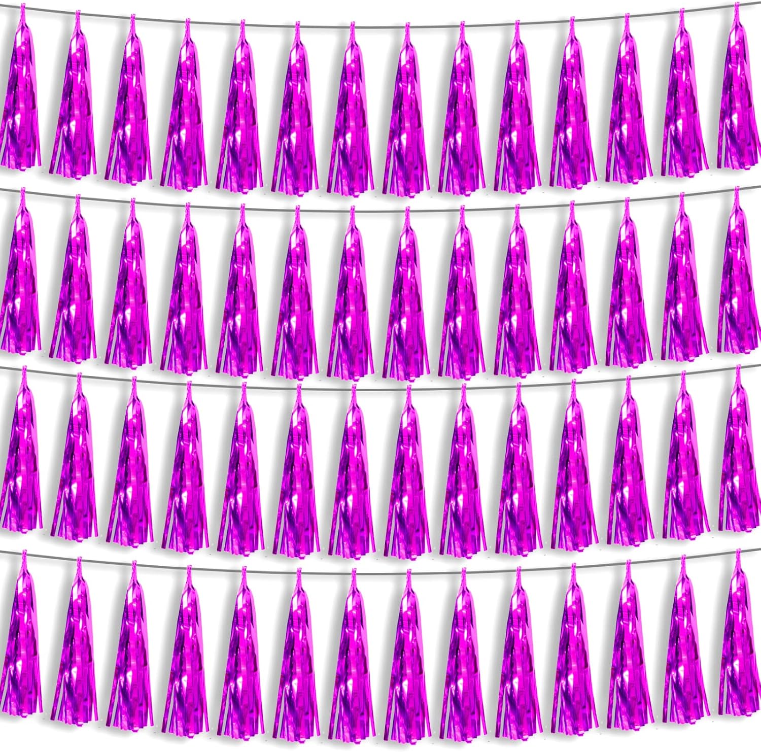 - 【Rose Red Party Supplies Set】: The total length of the rose red birthday tassels banner is 26.2 feet, divided into 4 strips, each 6.5 feet long. Each banner contains 15 tassels, and each tassel measures 14 inches, for birthday decorations many occasions, and so on