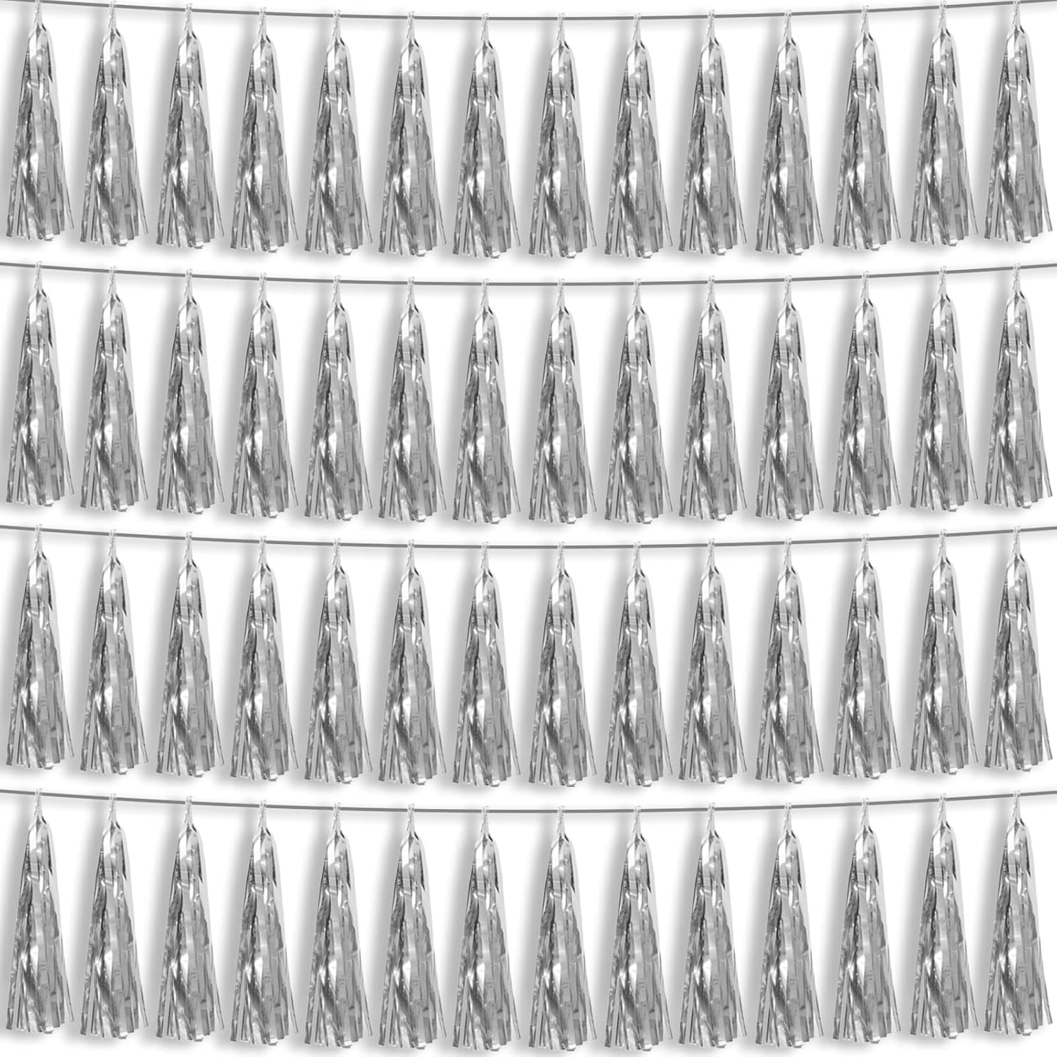 4P Silver Foil Fringe Metallic Tassel Streamers Banner Tassel Garland for Parade Floats, Bachelorette, Wedding, Birthday, Halloween, Christmas, Bridal/Baby Shower Party Decorations