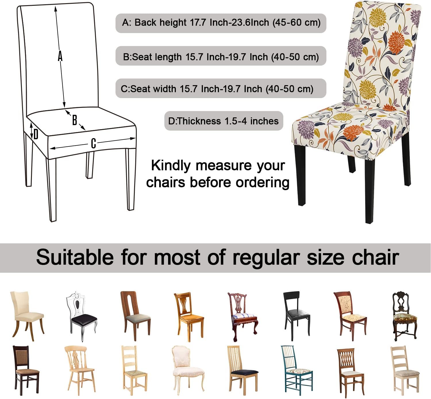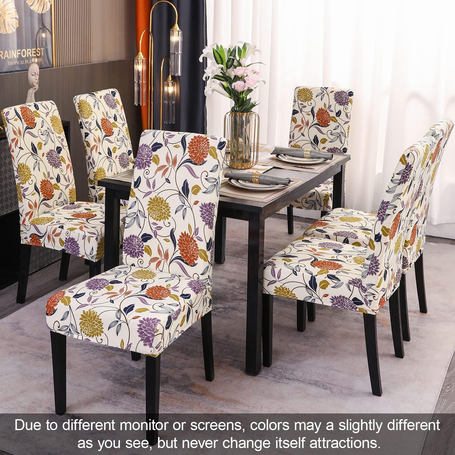 JQinHome Pattern Chair Covers for Dining Room Set of 6, High Stretch Removable Washable Parsons Chair Slipcover for Home Party Hotel Wedding Ceremony (Flower,6PCS)