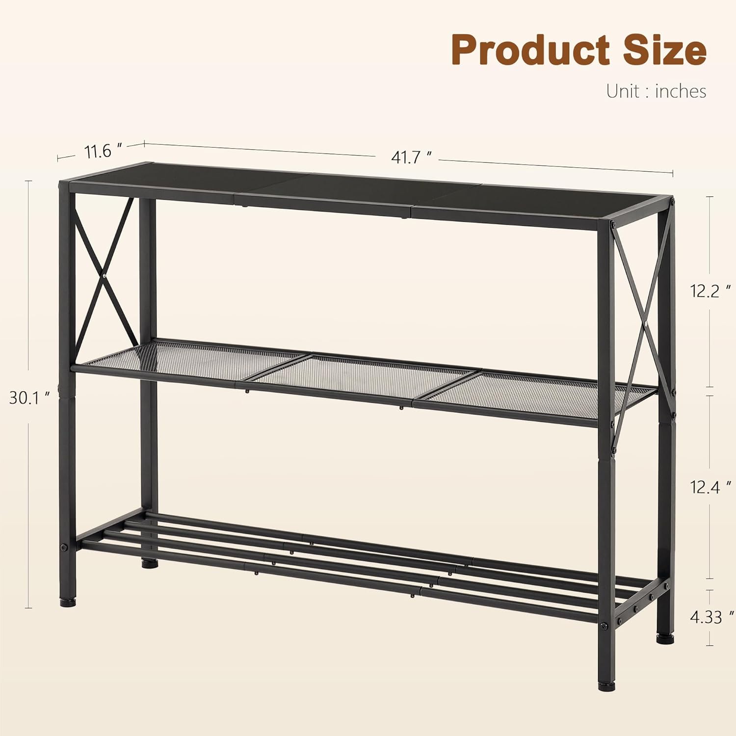 - ă3-Tier Large Storage Spaceă42" x 12" long table top offers more storage space without occupying much space for various display options. 2-Tier shelves beneath the wooden shelf offer extra space for your books, plants, shoes, bags, or boxes to keep your essentials. The sofa entry table puts all daily essentials at your easiest reach.