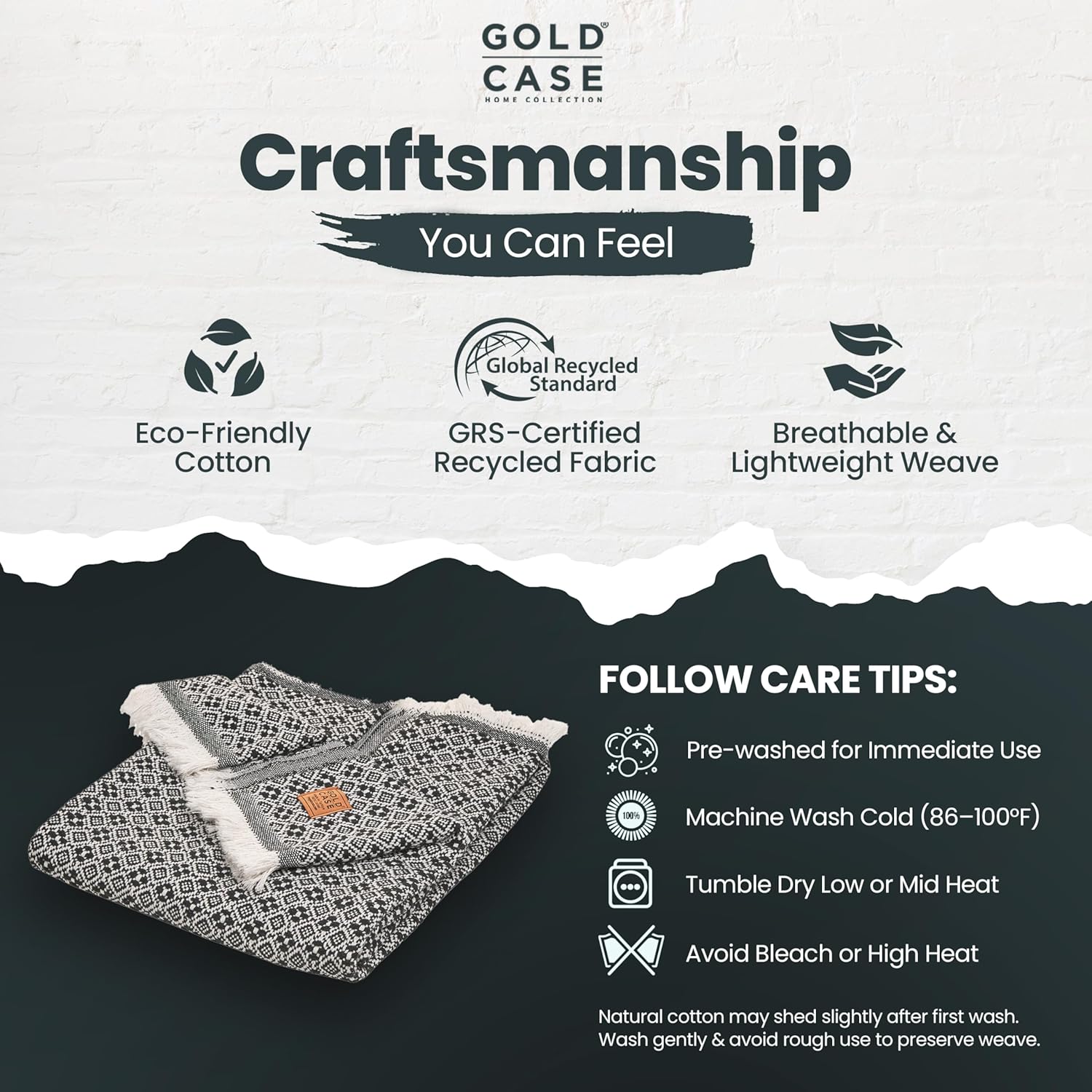 Gold Case Throw Blanket for Couch – 100% Recycled Turkish Cotton Blankets & Throws – Elegant Decorative Throw Blankets for Living Room Sofa – Woven Throws for Couch – Retro Black – 50x60