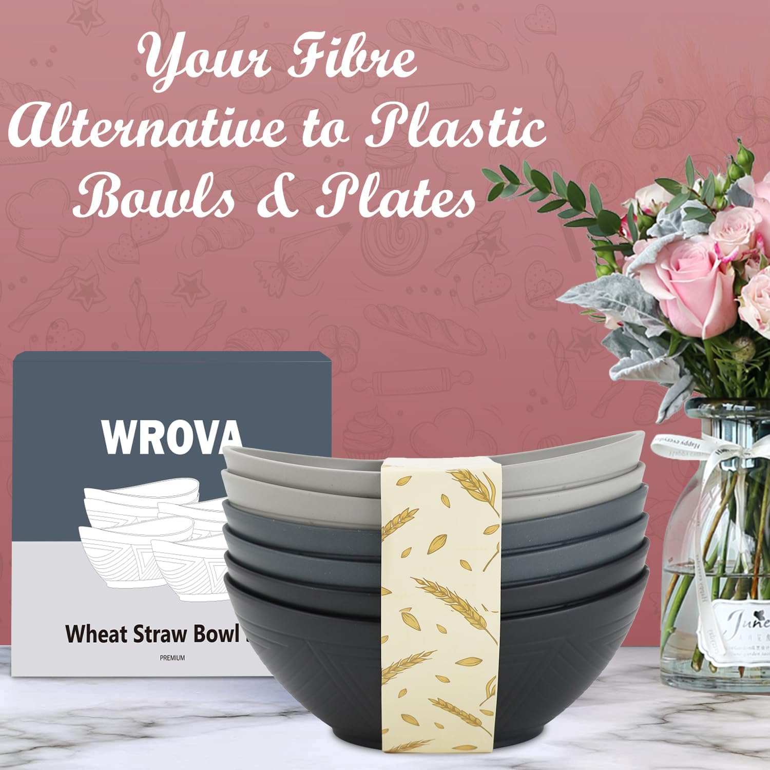 - 【𝐔𝐧𝐛𝐫𝐞𝐚𝐤𝐚𝐛𝐥𝐞 & 𝐋𝐢𝐠𝐡𝐭𝐰𝐞𝐢𝐠𝐡𝐭】- Wrova wheat straw bowls are unbreakable and durable. No matter how many times dropped, it won’t break into pieces. Kids will use these bowl sets without worried. Lightweight and Stack-able are other advantages, really suitable for salad,cereal and serving bowls.