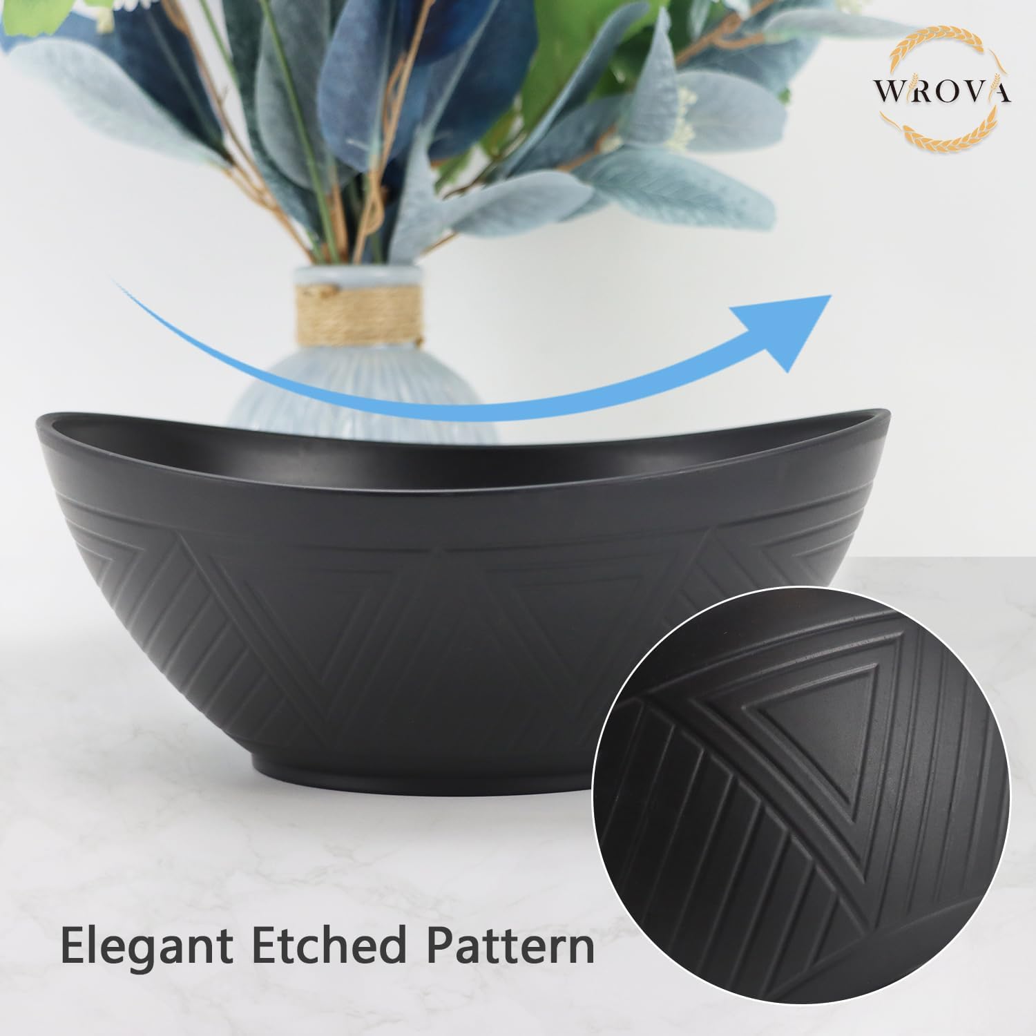 - 【𝗨𝗻𝗶𝗾𝘂𝗲 𝗦𝗵𝗮𝗽𝗲 & 𝗗𝗲𝗰𝗲𝗻𝘁 𝗔𝗽𝗽𝗲𝗮𝗿𝗮𝗻𝗰𝗲】- Elevate your dining experience with Wrova serving bowls featuring a distinctive oval shape and special etched pattern. Perfect for adding a touch of fun and sophistication to your meals.