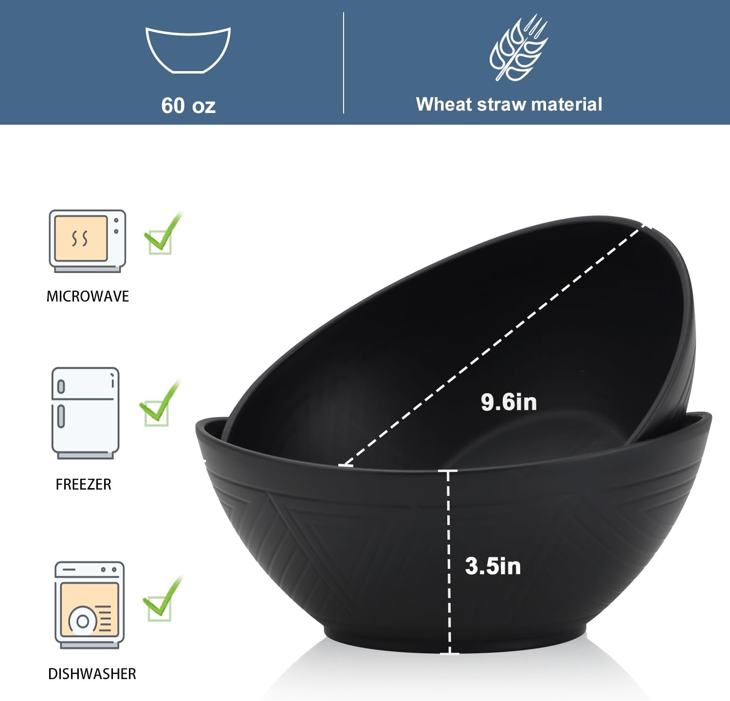 - 【𝐃𝐢𝐬𝐡𝐰𝐚𝐬𝐡𝐞𝐫 & 𝐌𝐢𝐜𝐫𝐨𝐰𝐚𝐯𝐞 𝐒𝐚𝐟𝐞】- Wrova reusable big bowls for kitchen are Microwave and Dishwasher safe, temperature resistance ranges from -4°F to 248°F. Also available for Freezer. Easy to clean and store,our bowls make your life more convenient.