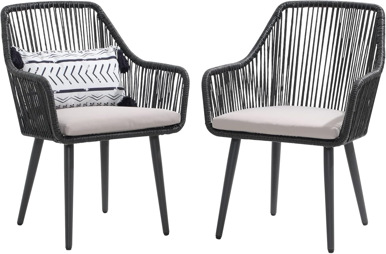 Patiorama Outdoor Dining Chairs, Patio Dining Chair Set of 2, All-Weather Woven Rope Rattan Chairs, Outdoor Dining Wicker Chairs with Armrests for Indoor Balcony Pool Backyard(Black)