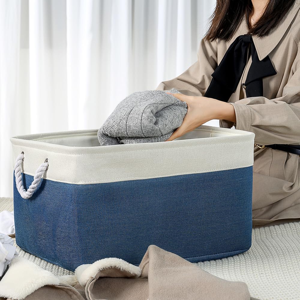 TheWarmHome Organization and Storage Basket for Organizing - X Large 3 Pack 17.7L×13.8W×9.8H in Collapsible Storage Bin for Shelves, Basket for Gifts Empty Toys Organizer Gift (White & Jean Blus)