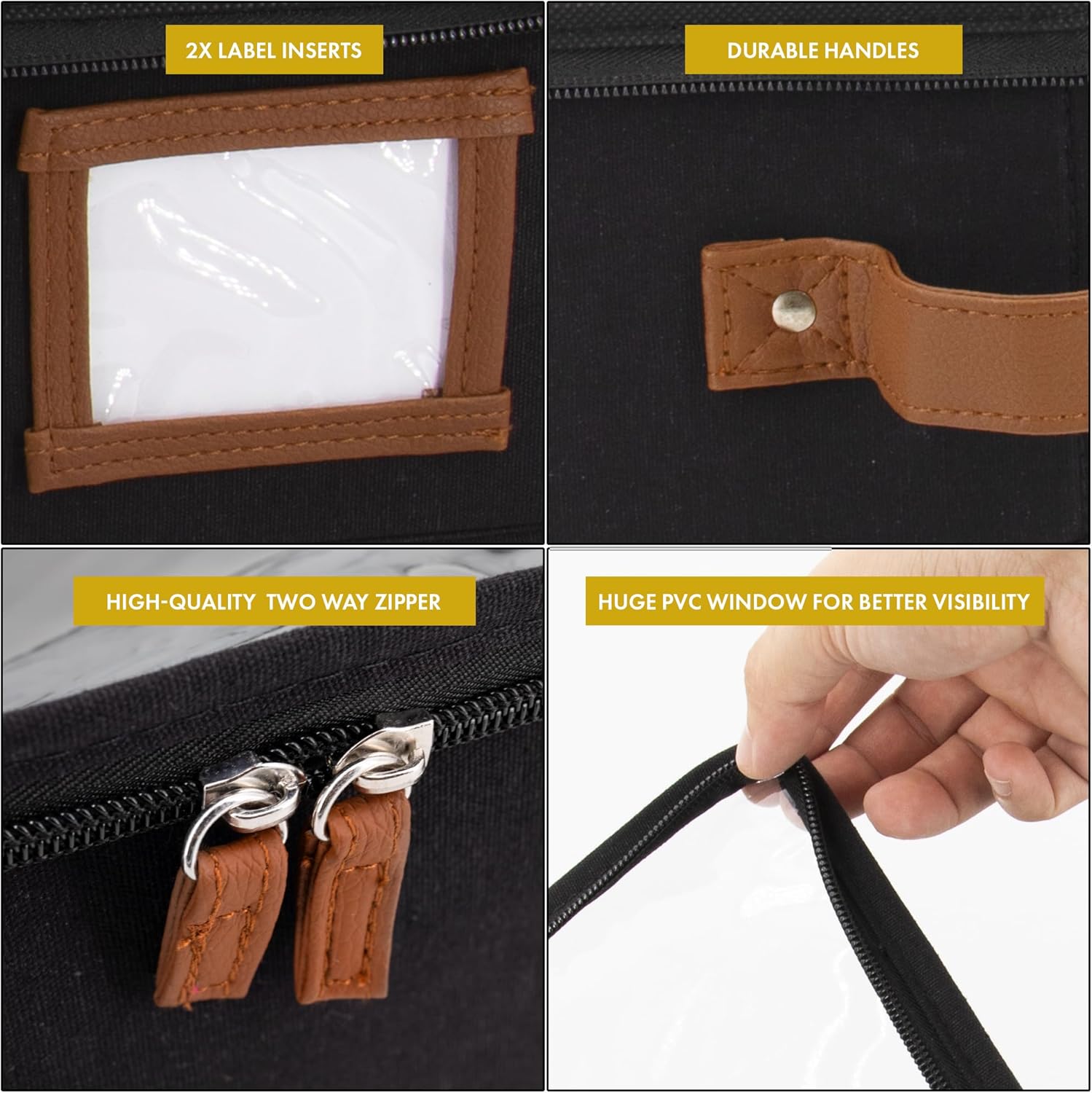 - 𝐃𝐨𝐮𝐛𝐥𝐞 𝐒𝐞𝐜𝐮𝐫𝐞 𝐇𝐚𝐧𝐝𝐥𝐞𝐬 𝐖𝐢𝐭𝐡 𝐇𝐞𝐚𝐯𝐲 𝐃𝐮𝐭𝐲 𝐙𝐢𝐩𝐩𝐞𝐫 𝐂𝐥𝐨𝐬𝐮𝐫𝐞: Our storage boxes with lids for organizing comes with 3 fortified handles for secure lifting & powerful zipper for durable sealing. The handles of these low profile underbed storage are precisely stitched inside out, with additional rivets to hold up to 35 lbs for heavy-duty use making it ideal to use as flat clothing storage. To enhance safety, our under bed flat storage boxes are expertly tailored to keep your clothes protected.