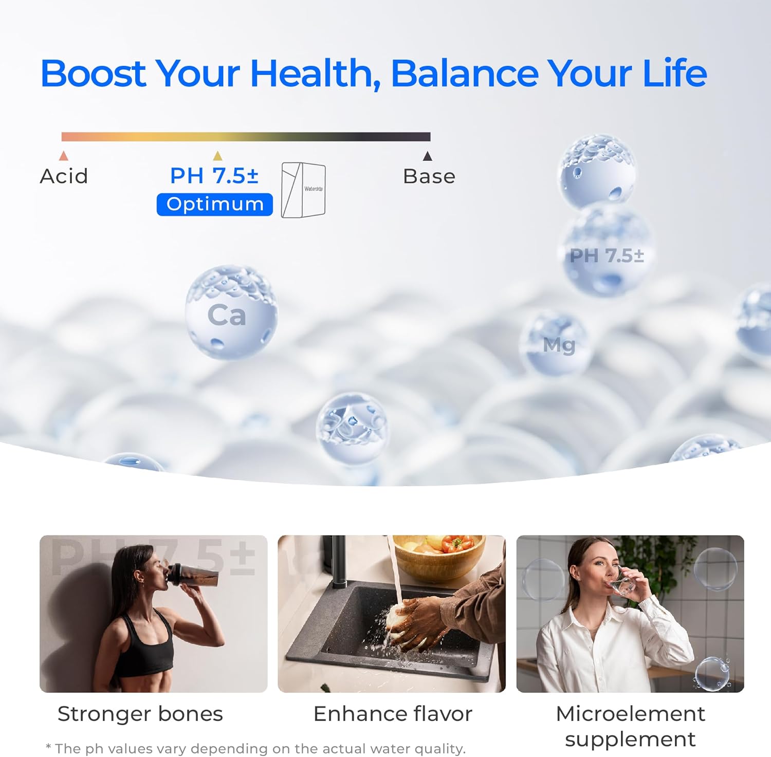 - [ Healthy Mineral Boost ] By original PCC mineralization technology, this undersink ro system activates specific mineral crystals to mimic the natural formation of spring water, adjusting purified water to an ideal, body-friendly pH of 7.5±. Enjoy not only the health-promoting benefits of weak alkaline water but also a smooth taste that enhances the flavours.【Note: The WD-F1A replacement filter may cause a slight increase in TDS due to its alkaline mineralized filter.】